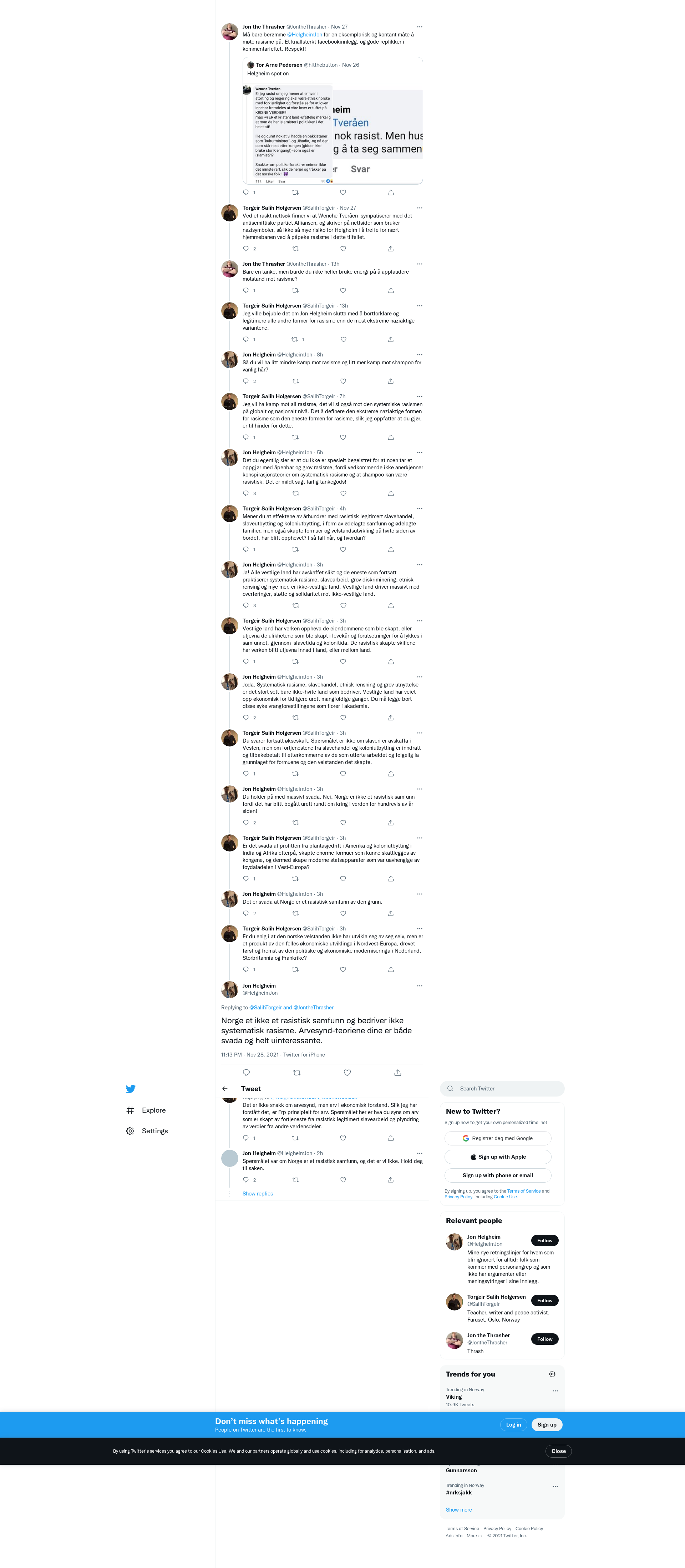 @SalihTorgeir @JontheThrasher Norge et ikke et rasistisk samfunn og bedriver ikke systematisk rasisme. Arvesynd-teoriene dine er både svada og helt uinteressante.