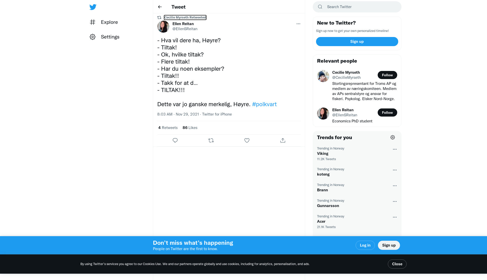 RT @EllenSReitan: - Hva vil dere ha, Høyre? - Tiltak! - Ok, hvilke tiltak? - Flere tiltak! - Har du noen eksempler? - Tiltak!! - Takk for…