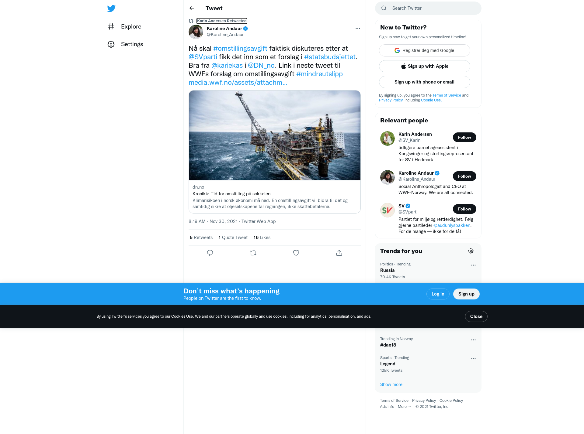 RT @Karoline_Andaur: Nå skal #omstillingsavgift faktisk diskuteres etter at @SVparti fikk det inn som et forslag i #statsbudsjettet. Bra fra @kariekas i @DN_no. Link i neste tweet til WWFs forslag om omstillingsavgift #mindreutslipp