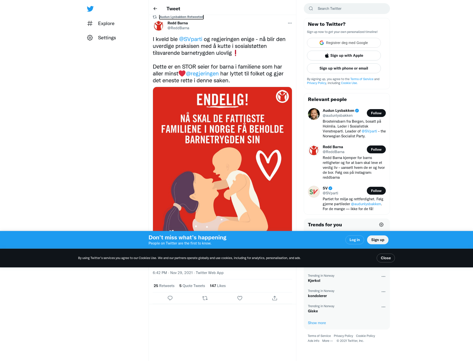 Dette er en STOR seier for barna i familiene som har aller minst❤️@regjeringen har lyttet til folket og gjør det eneste rette i denne saken. https://t.co/FWYvC3xXxz