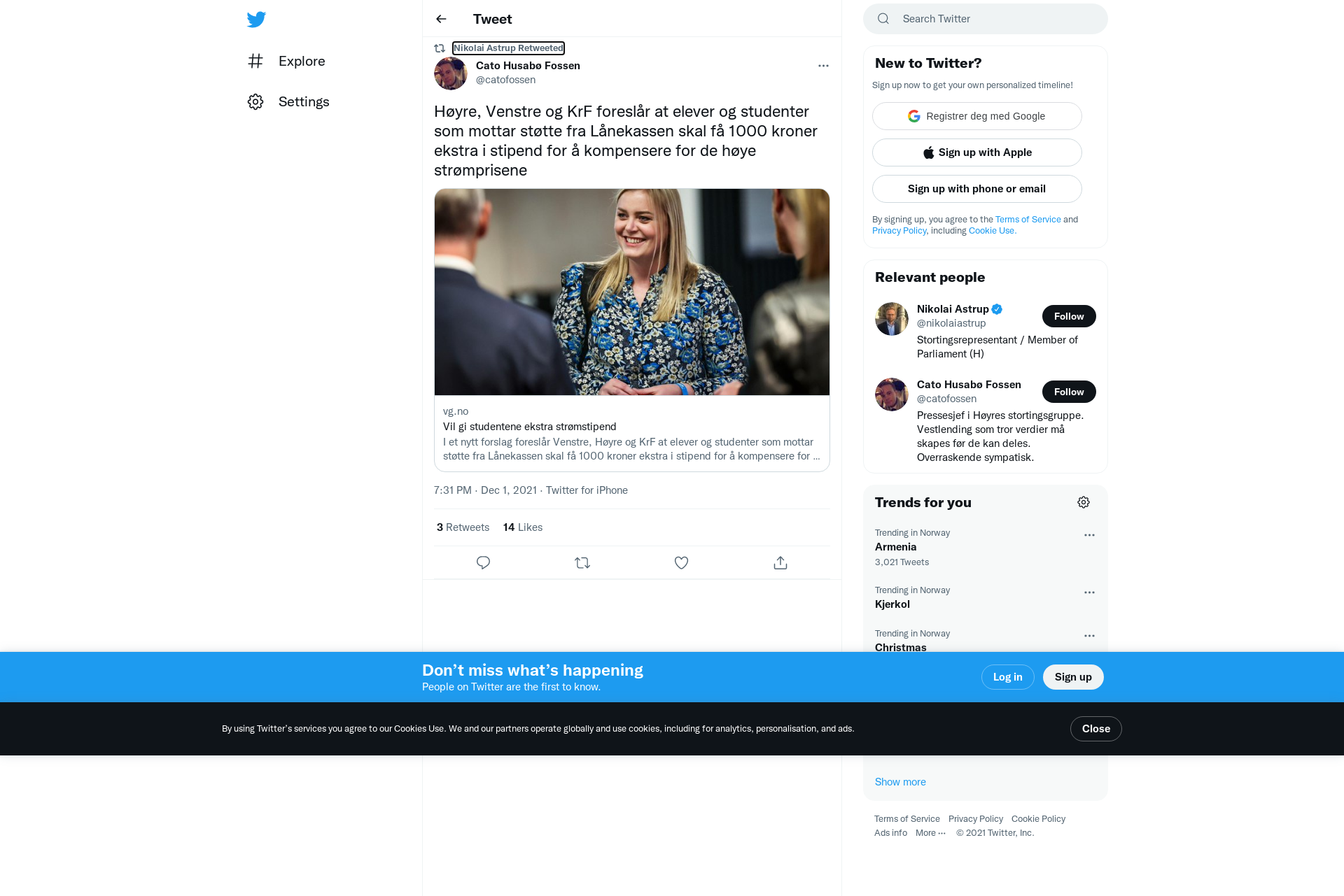 RT @catofossen: Høyre, Venstre og KrF foreslår at elever og studenter som mottar støtte fra Lånekassen skal få 1000 kroner ekstra i stipend for å kompensere for de høye strømprisene https://t.co/aiybnqUwQA