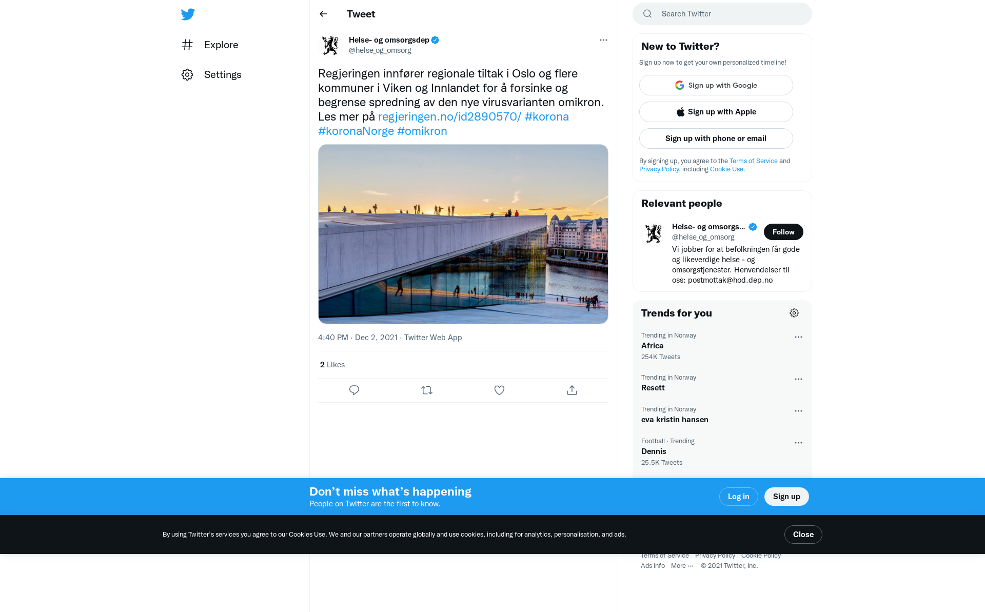 Regjeringen innfører regionale tiltak i Oslo og flere kommuner i Viken og Innlandet for å forsinke og begrense spredning av den nye virusvarianten omikron. Les mer på https://t.co/NrYfUMhdXv #korona #koronaNorge #omikron https://t.co/m6iI7xTYdv