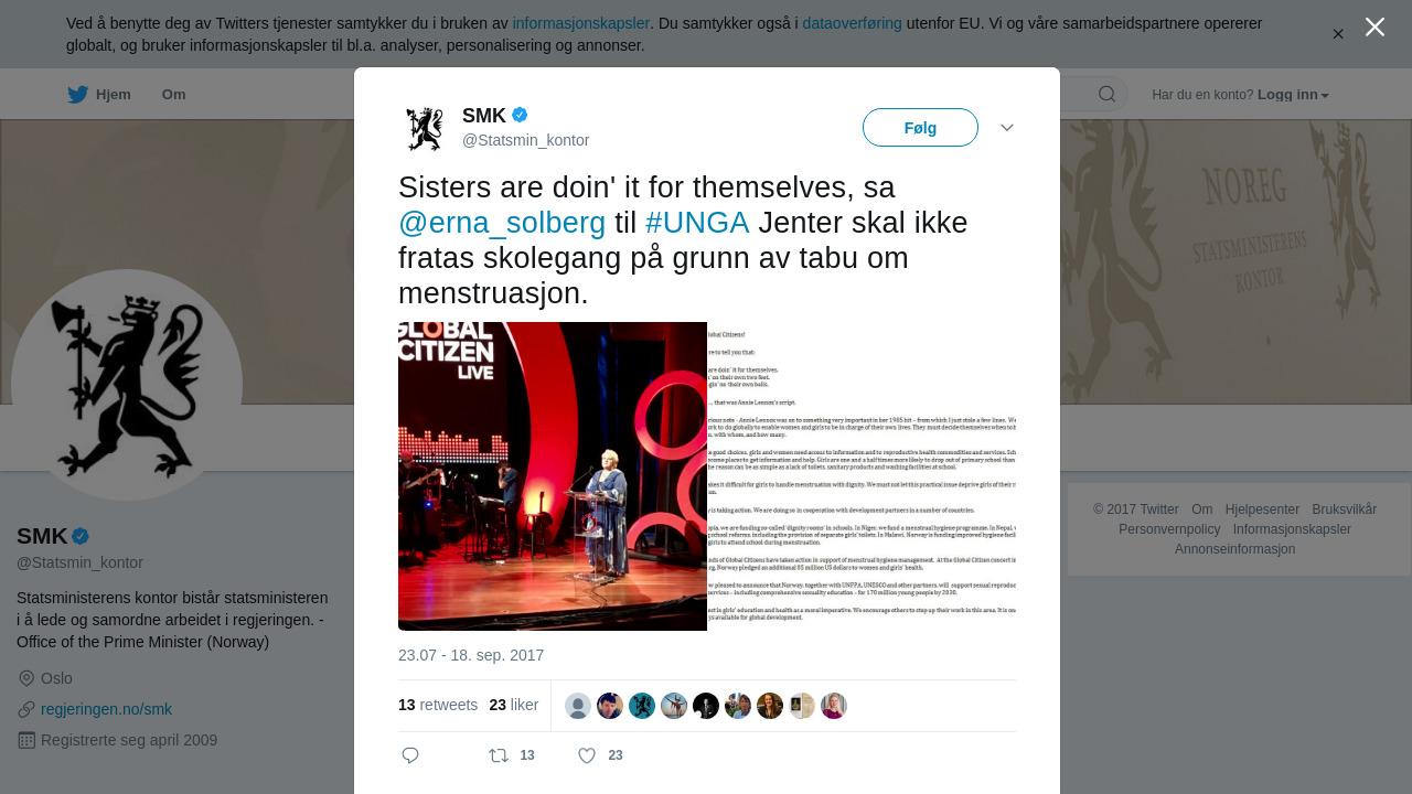 Sisters are doin' it for themselves, sa @erna_solberg til #UNGA Jenter skal ikke fratas skolegang på grunn av tabu… https://t.co/uiI38EBmJr