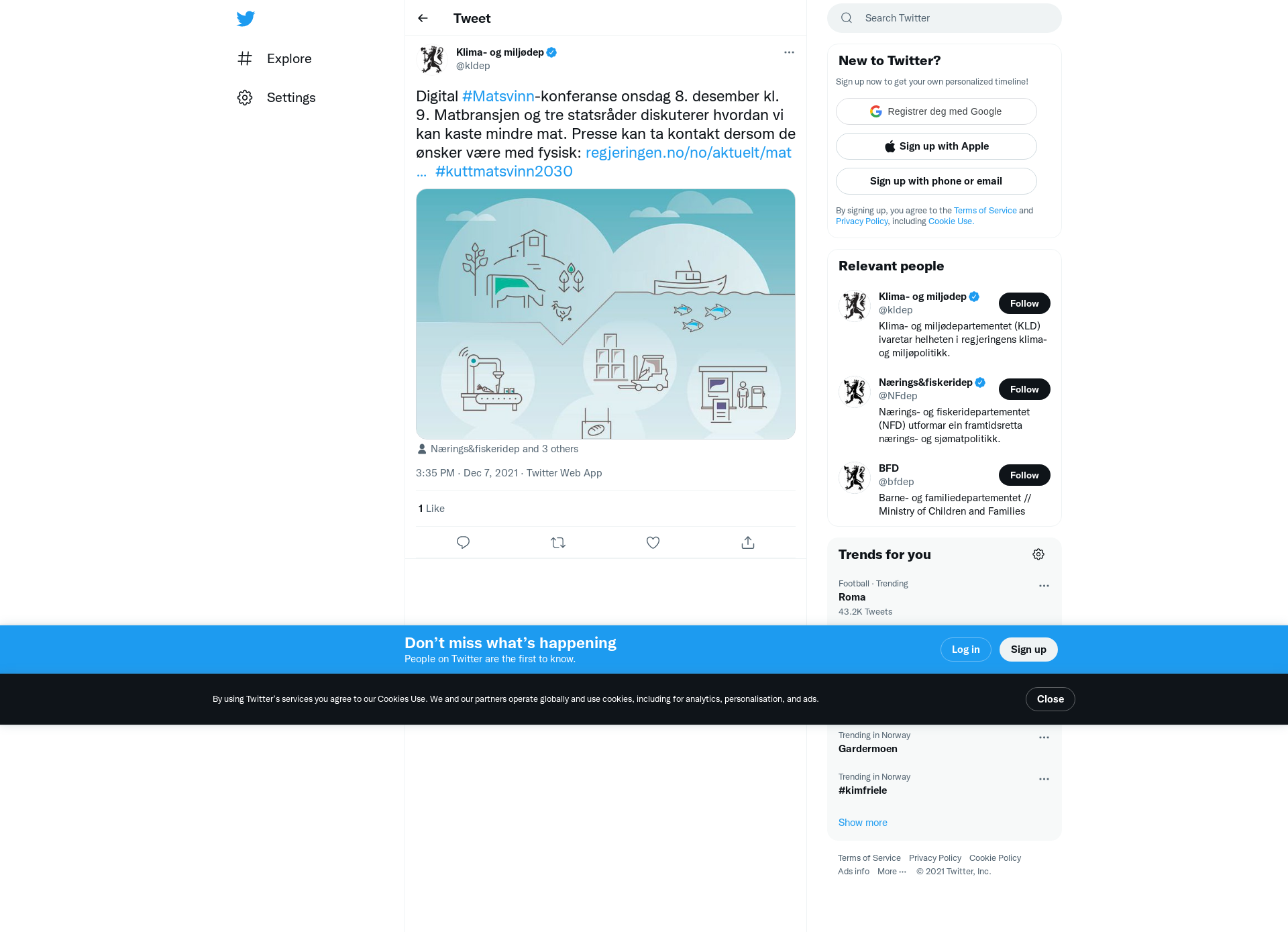 Klima- og miljøminister Espen Barth Eide, landbruks- og matminister Sandra Borch, barne- og familieminister Kjersti Toppe og hele matbransjen legger fram de første resultatene fra bransjeavtalen om reduksjon av matsvinn onsdag 8. desember.