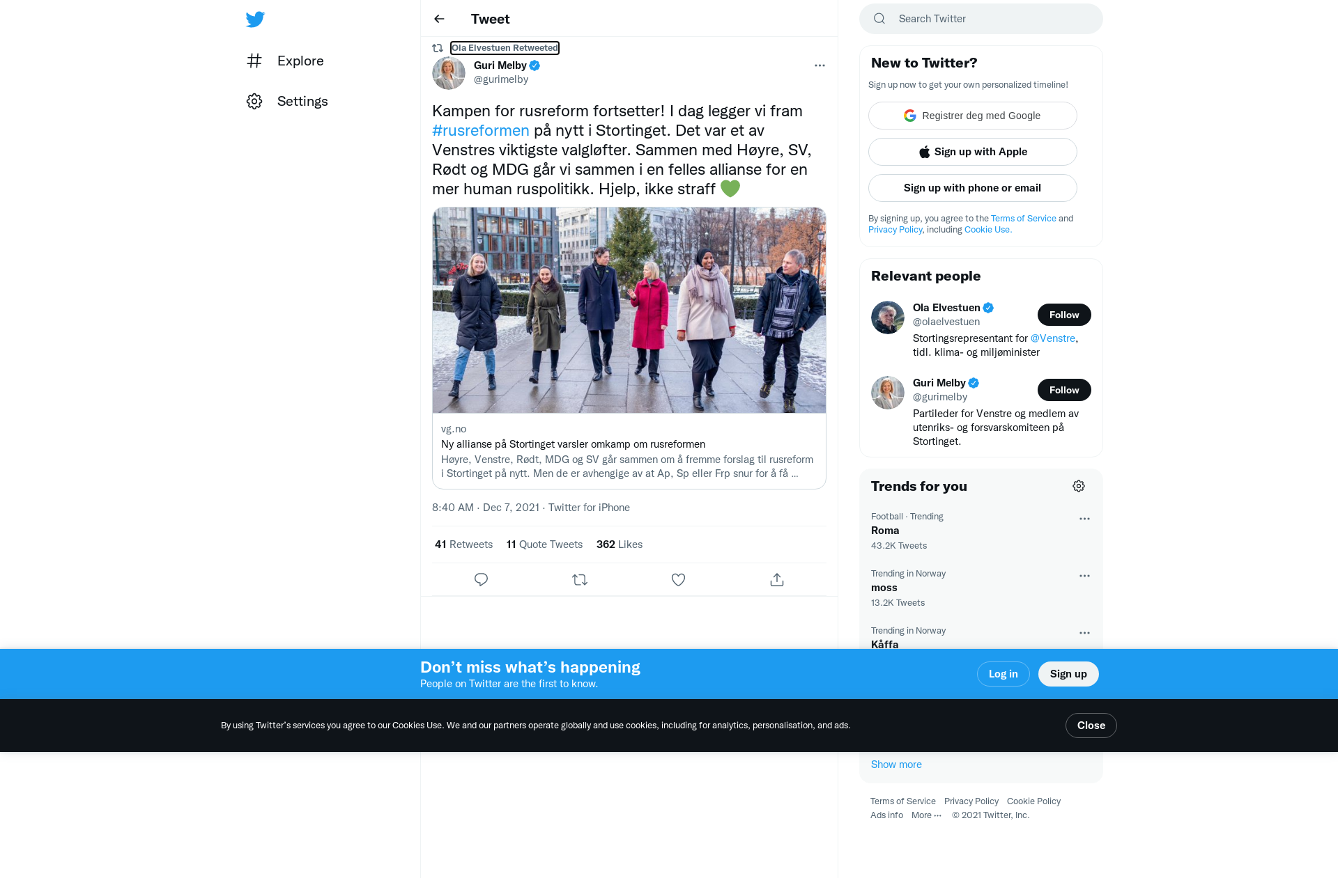 RT @gurimelby: Kampen for rusreform fortsetter! I dag legger vi fram #rusreformen på nytt i Stortinget. Det var et av Venstres viktigste valgløfter. Sammen med Høyre, SV, Rødt og MDG går vi sammen i en felles allianse for en mer human ruspolitikk. Hjelp, ikke straff 💚