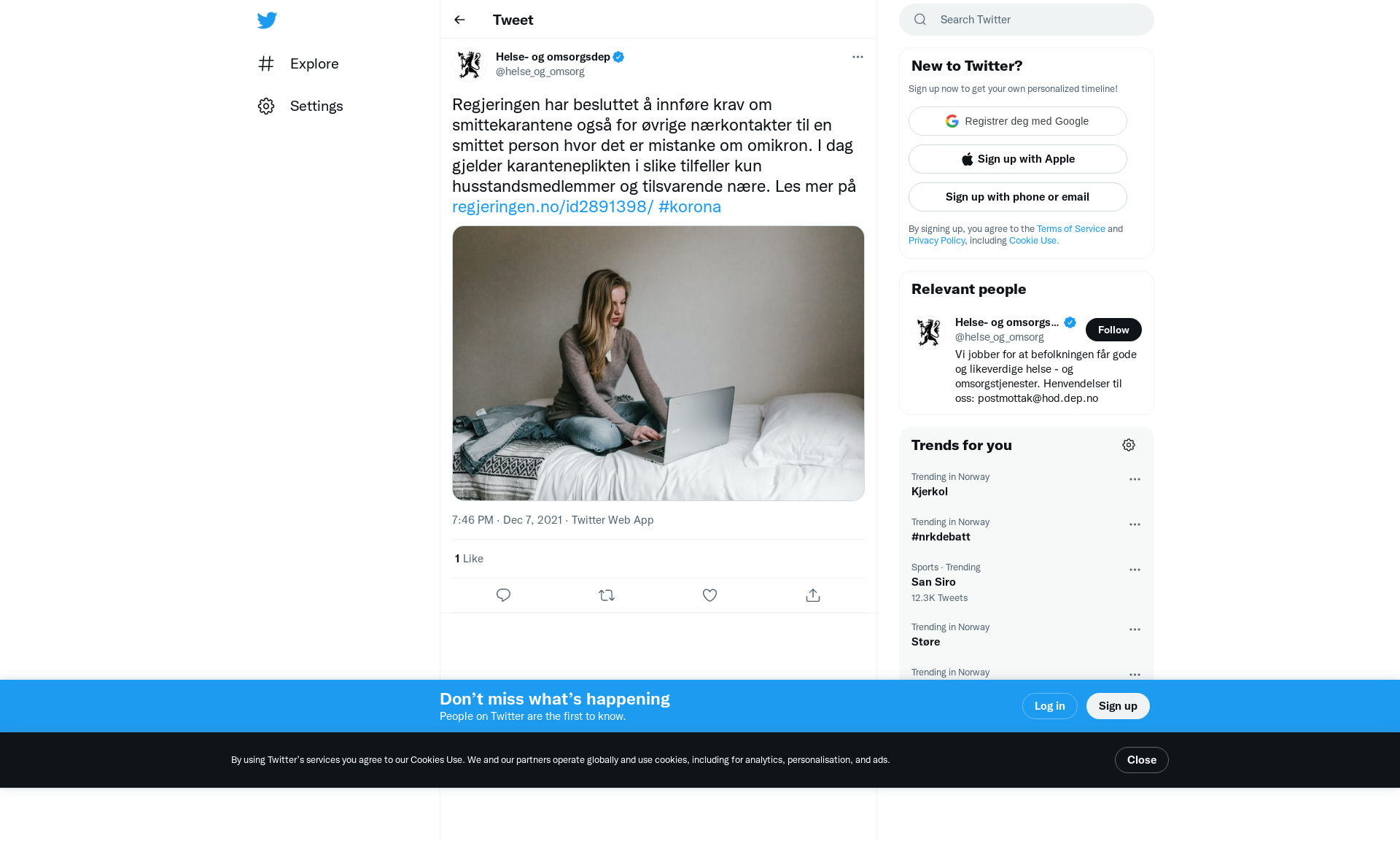 Regjeringen har besluttet å innføre krav om smittekarantene også for øvrige nærkontakter til en smittet person hvor det er mistanke om omikron. I dag gjelder karanteneplikten i slike tilfeller kun husstandsmedlemmer og tilsvarende nære.