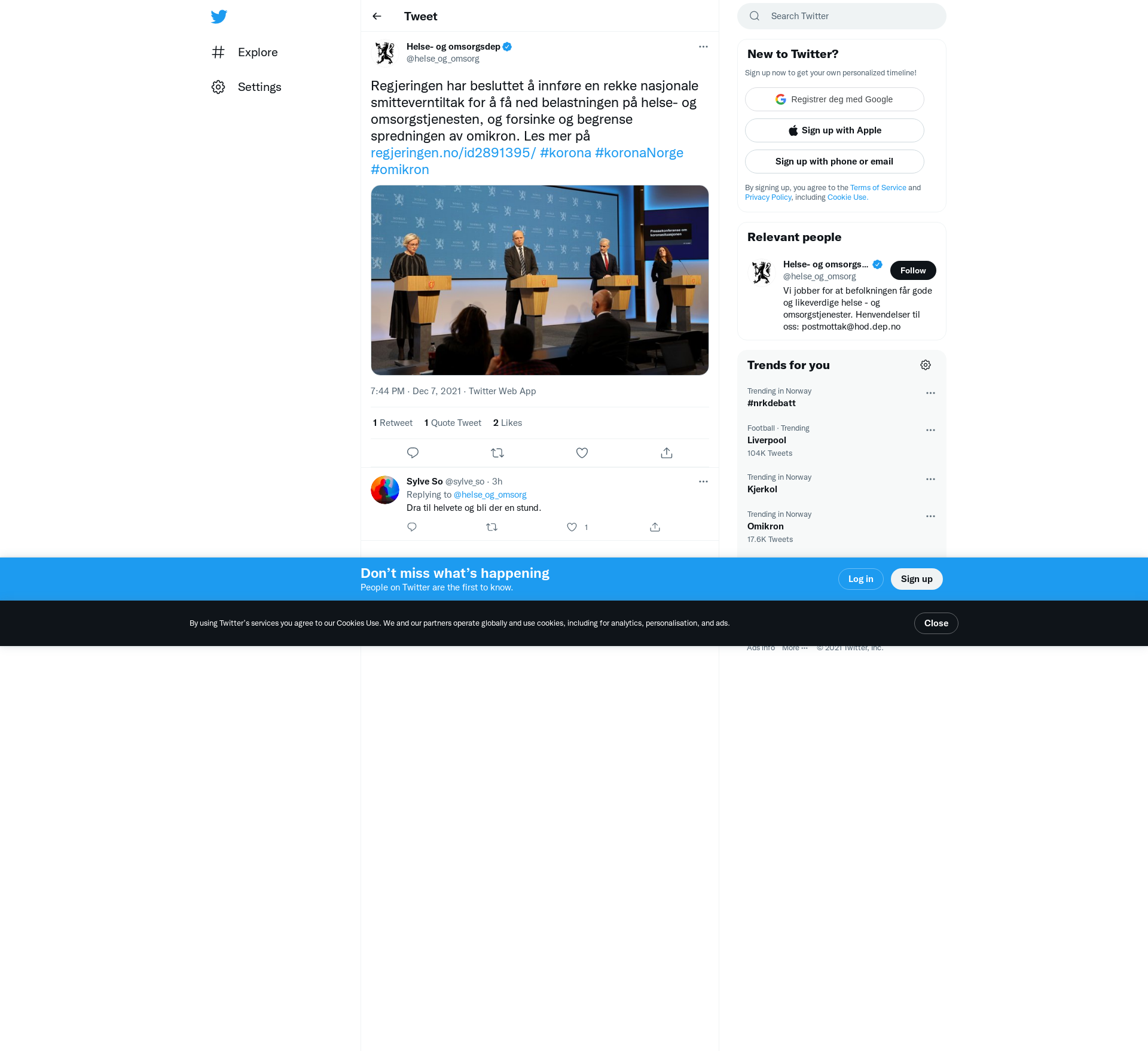 Regjeringen har besluttet å innføre en rekke nasjonale smitteverntiltak for å få ned belastningen på helse- og omsorgstjenesten, og forsinke og begrense spredningen av omikron. Les mer på https://t.co/JhCOMQaEIc #korona #koronaNorge #omikron https://t.co/R3D7P63ovE