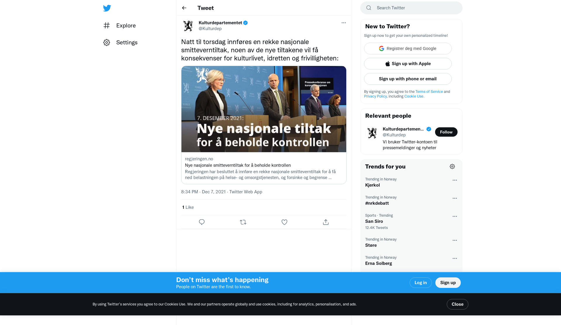 Natt til torsdag innføres en rekke nasjonale smitteverntiltak, noen av de nye tiltakene vil få konsekvenser for kulturlivet, idretten og frivilligheten: https://t.co/bLgXQpw4Xw
