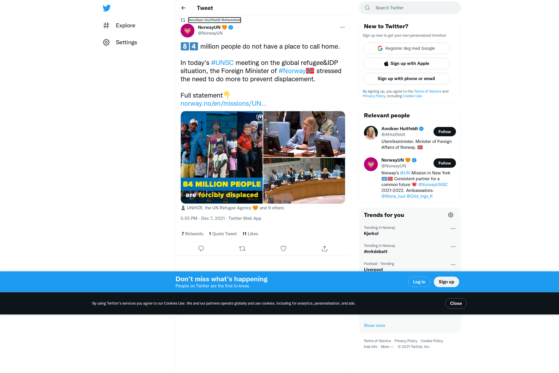RT @NorwayUN: 8⃣4⃣ million people do not have a place to call home. In today's #UNSC meeting on the global refugee&IDP situation, the Fore…