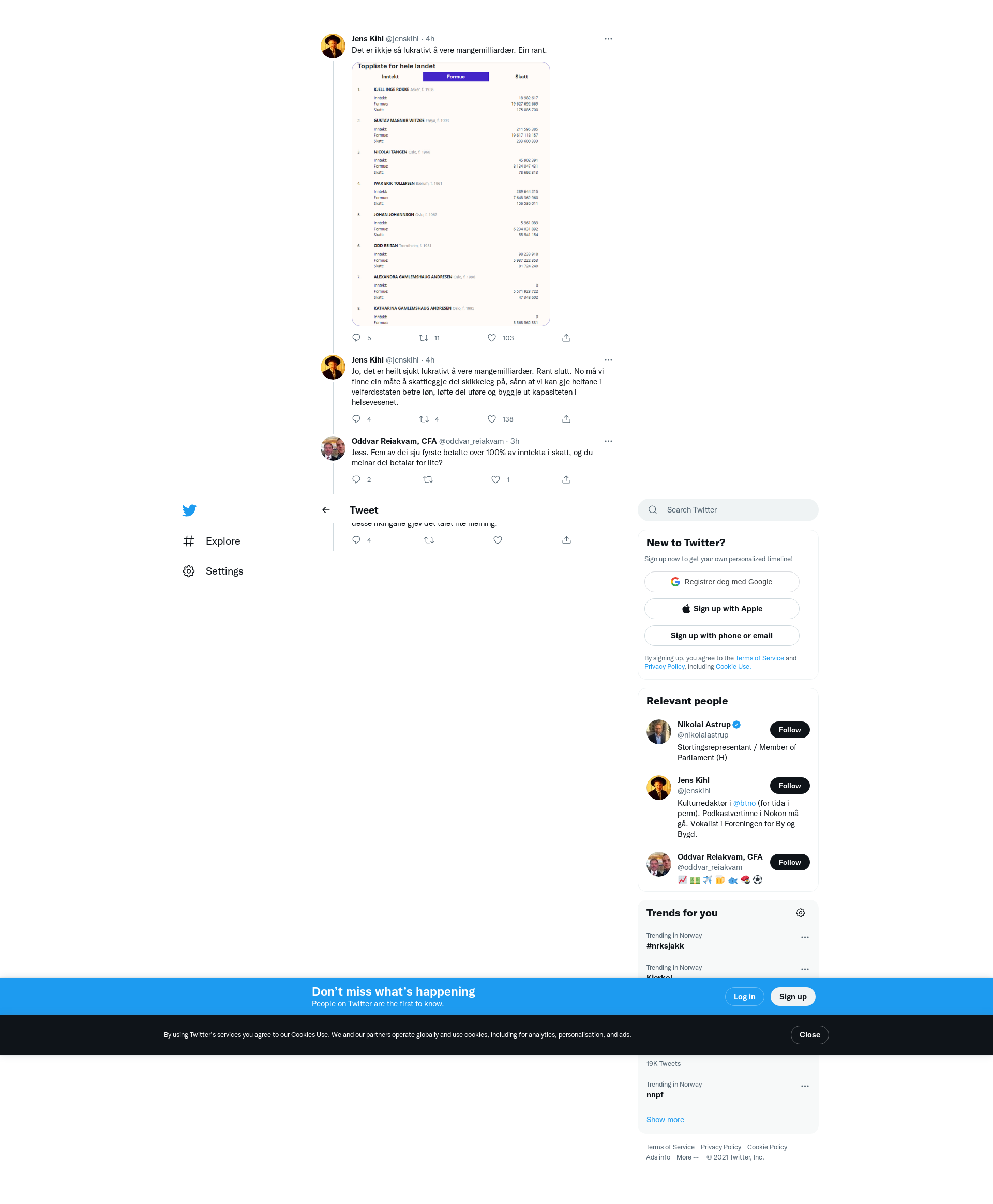 @jenskihl @oddvar_reiakvam Korrekt, men den reelle personlige inntekten er betydelig lavere enn det som fremgår av ligningen, ettersom dette antakelig er inntekt fra utbytte, som oppjusteres med en faktor (i år er det vel 1,44). Så inntekten er lavere og skatteprosenten høyere enn ligningen viser.