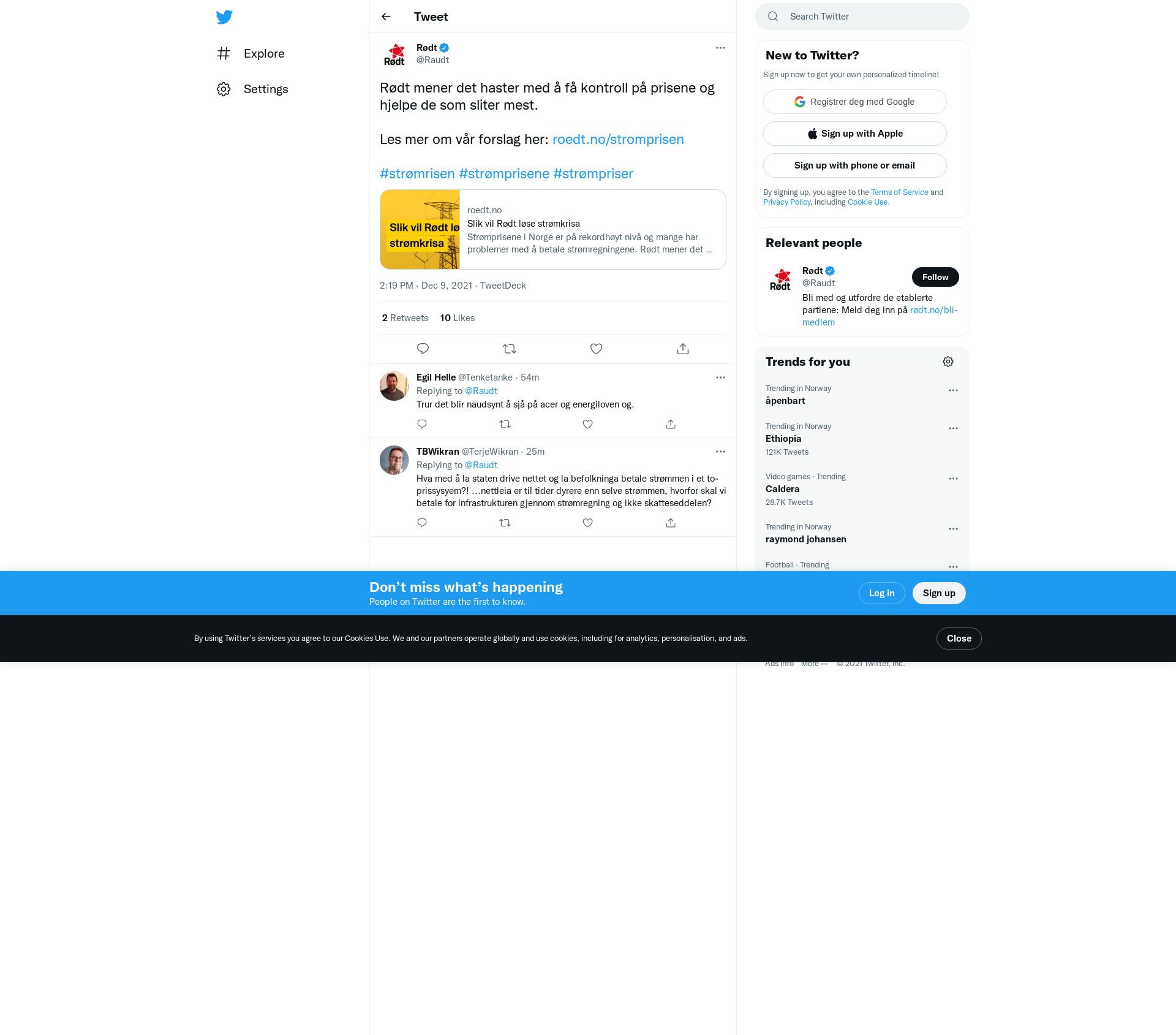 Strømprisene i Norge er på rekordhøyt nivå og mange har problemer med å betale strømregningene. Rødt mener det haster med å få kontroll på prisene og hjelpe de som sliter mest.