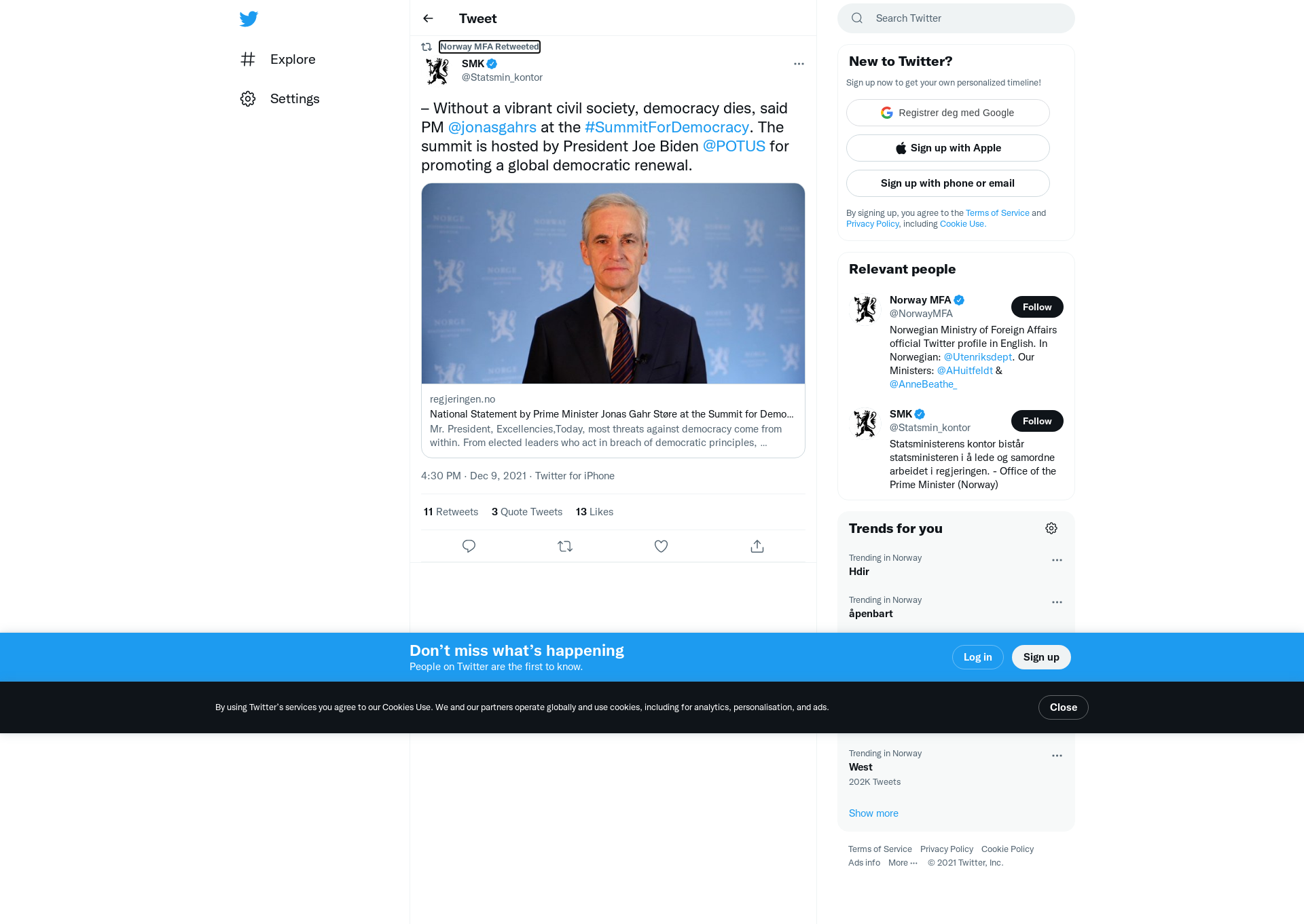 RT @Statsmin_kontor: – Without a vibrant civil society, democracy dies, said PM @jonasgahrs at the #SummitForDemocracy. The summit is hosted by President Joe Biden @POTUS for promoting a global democratic renewal. https://t.co/PzoHsj3bhp