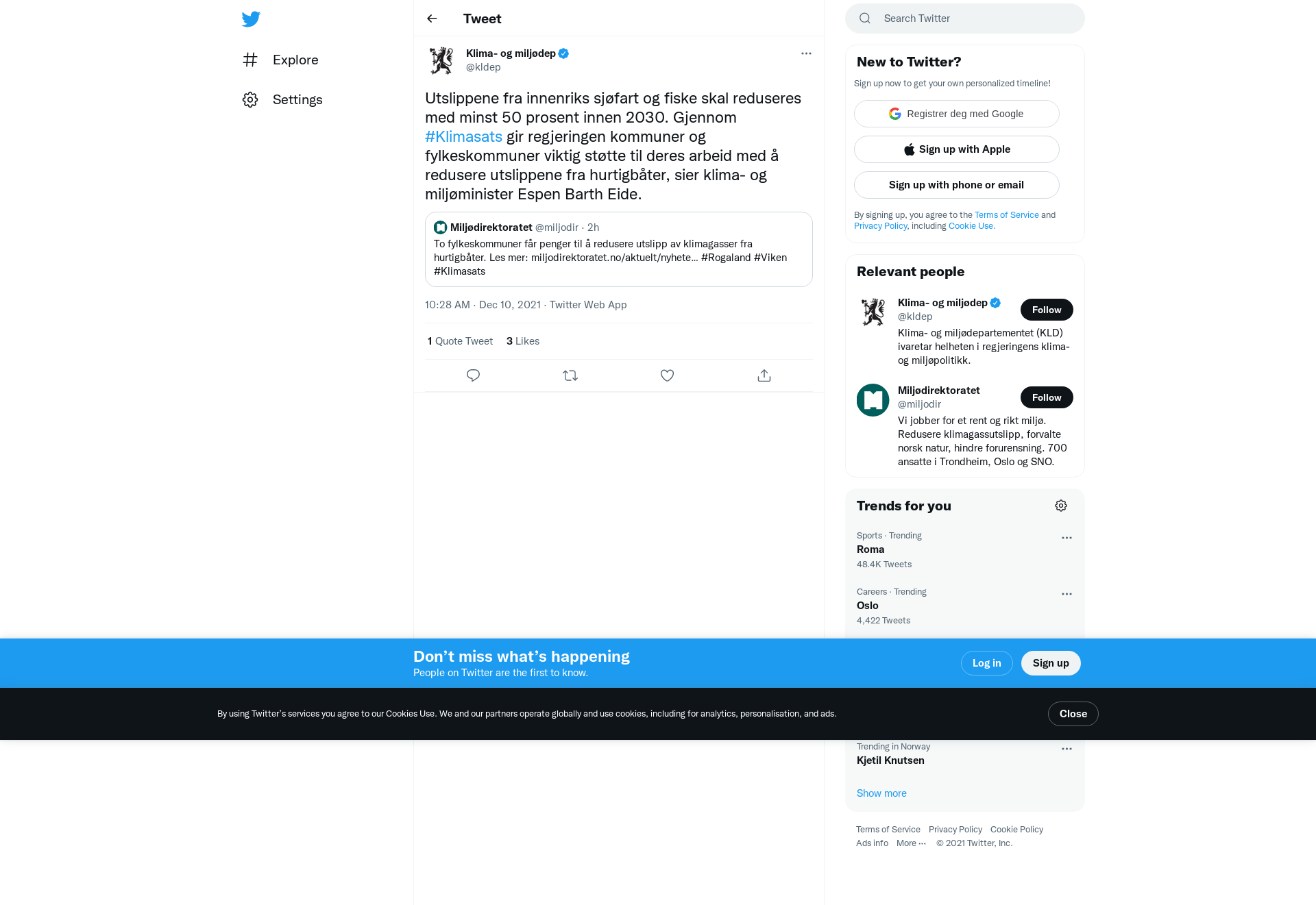 Utslippene fra innenriks sjøfart og fiske skal reduseres med minst 50 prosent innen 2030. Gjennom #Klimasats gir regjeringen kommuner og fylkeskommuner viktig støtte til deres arbeid med å redusere utslippene fra hurtigbåter, sier klima- og miljøminister Espen Barth Eide.