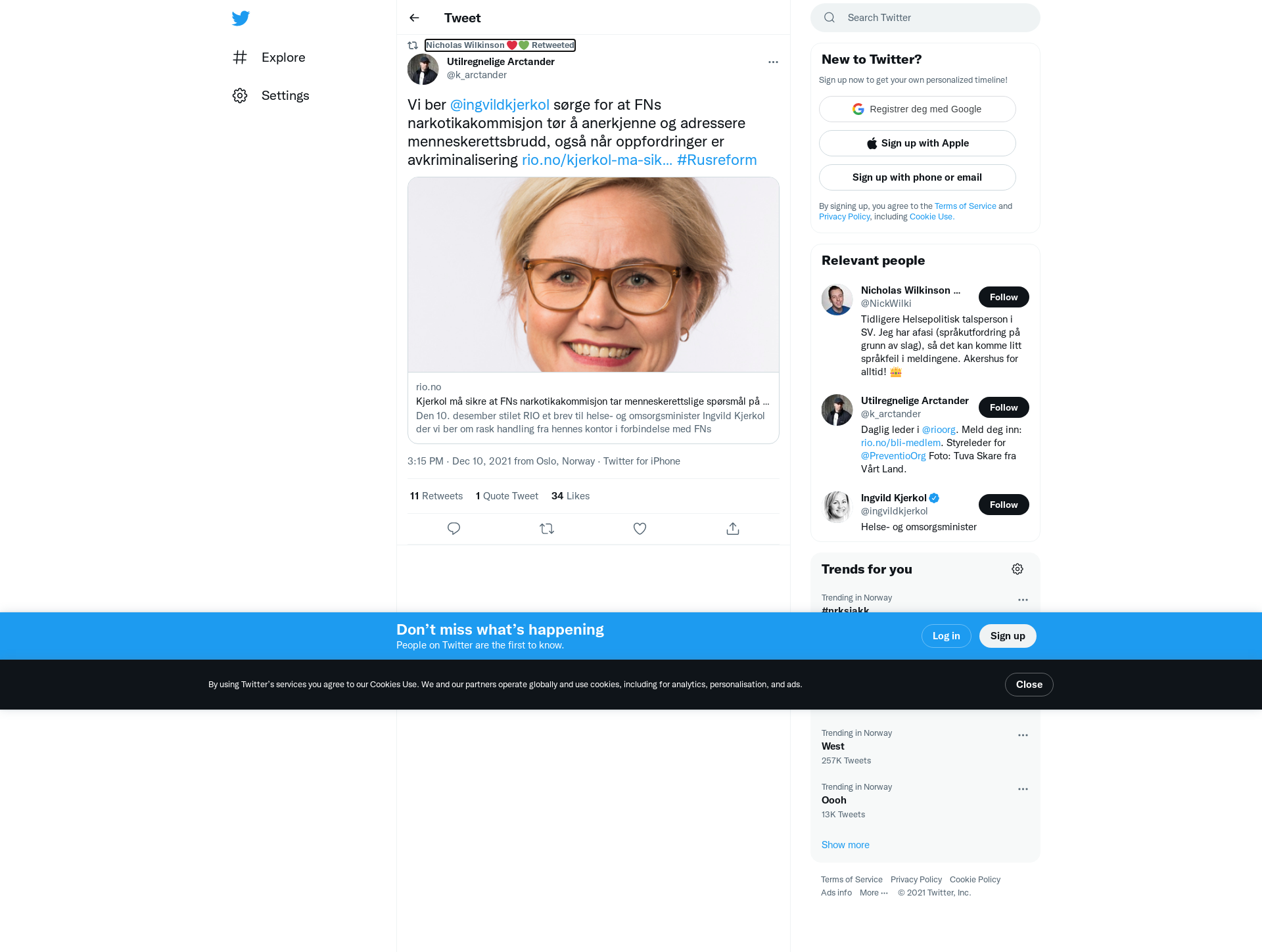 RT @k_arctander: Vi ber @ingvildkjerkol sørge for at FNs narkotikakommisjon tør å anerkjenne og adressere menneskerettsbrudd, også når oppfordringer er avkriminalisering https://t.co/RXmVuX3etN #Rusreform
