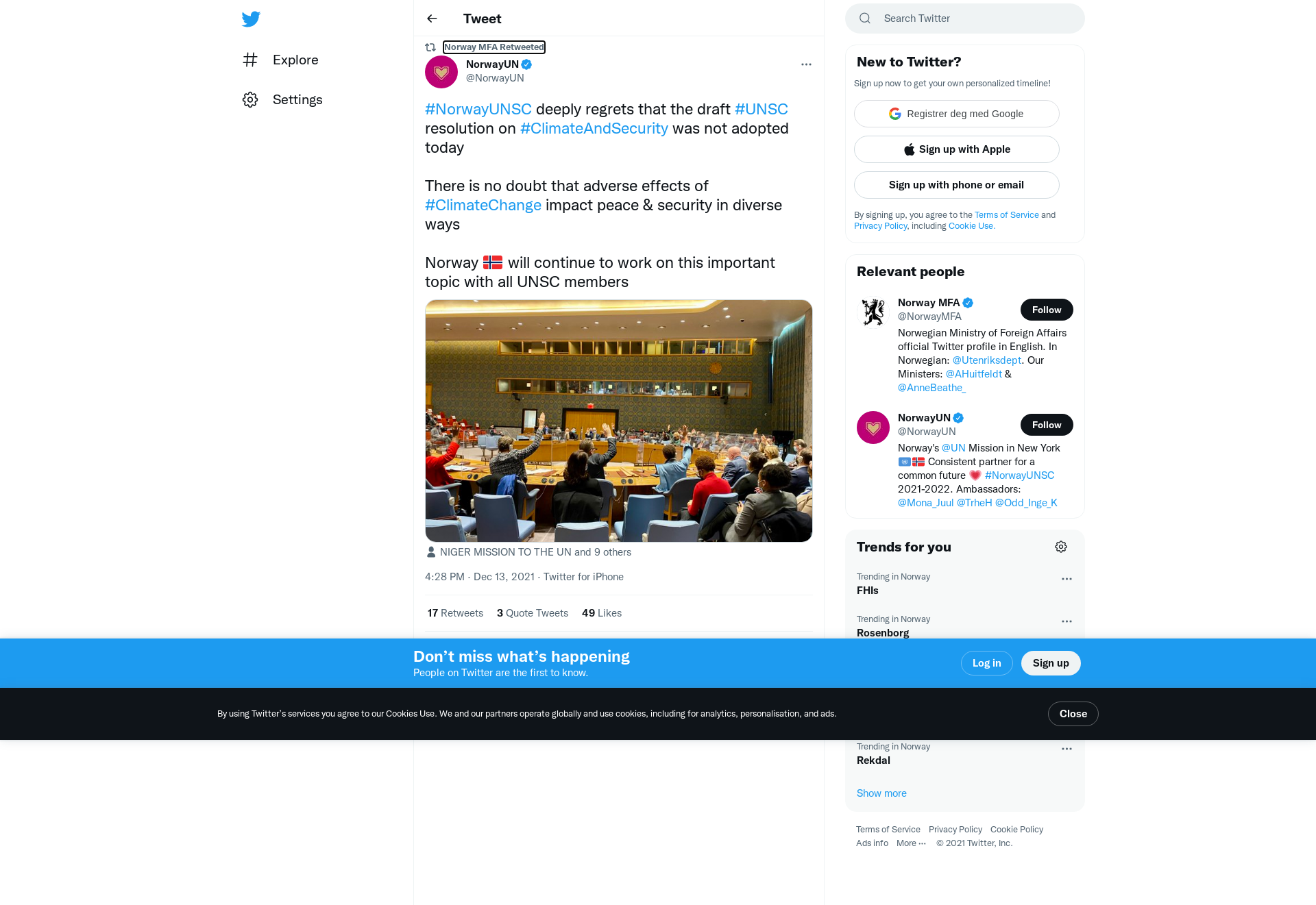 RT @NorwayUN: #NorwayUNSC deeply regrets that the draft #UNSC resolution on #ClimateAndSecurity was not adopted today There is no doubt th…