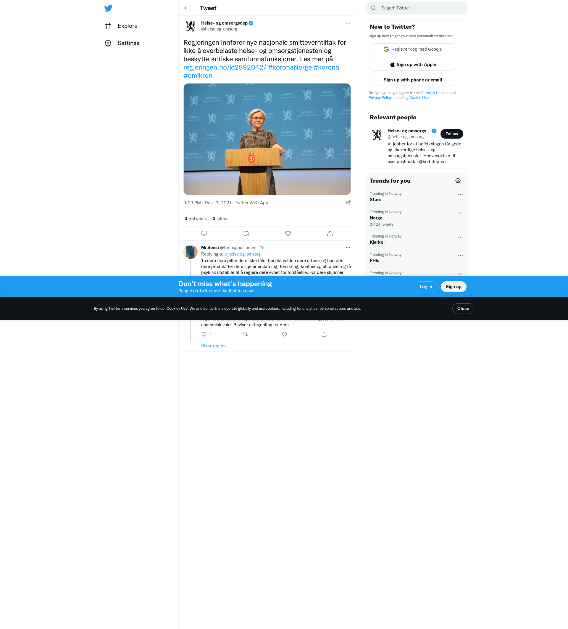 Regjeringen innfører nye nasjonale smitteverntiltak for ikke å overbelaste helse- og omsorgstjenesten og beskytte kritiske samfunnsfunksjoner. Det blir strengere regler for arrangementer og uteliv for voksne, i kulturlivet og på organiserte fritidsakti...