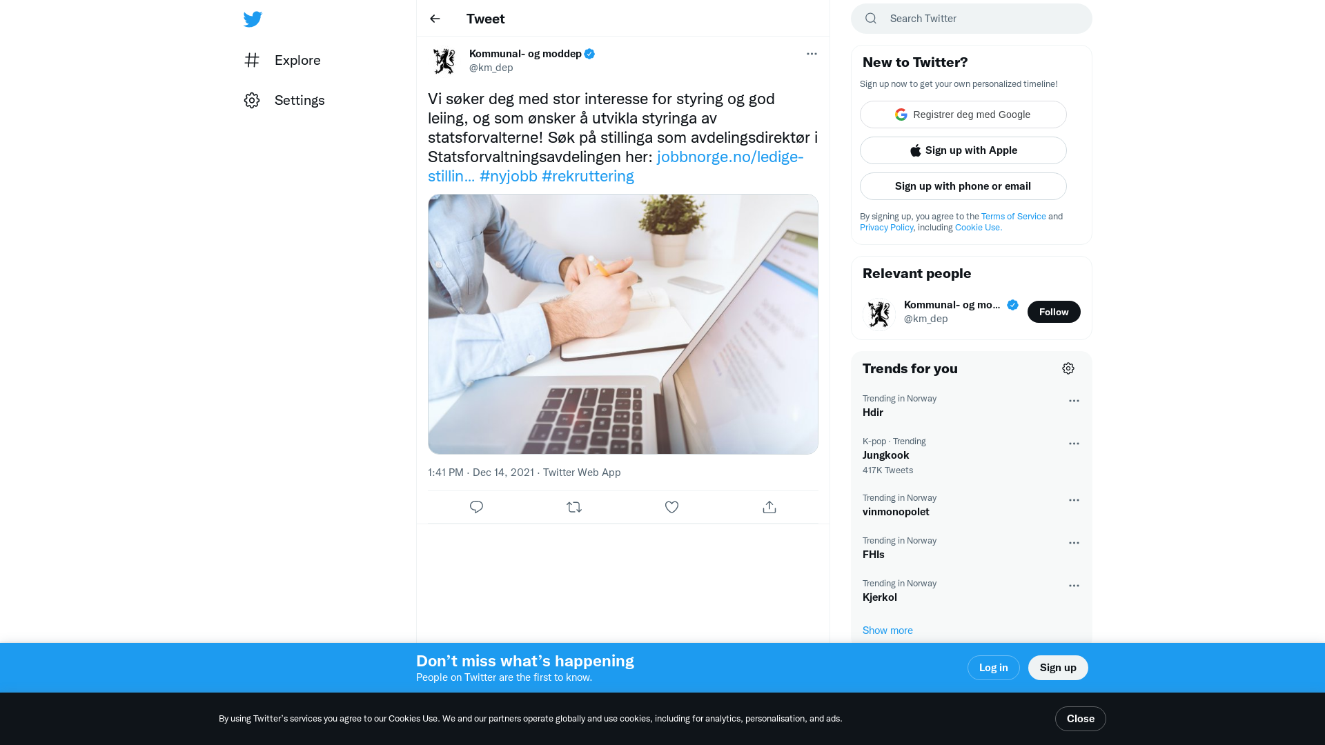 Stillingstittel: Avdelingsdirektør i Statsforvaltningsavdelingen (214434), Arbeidsgiver: Kommunal- og moderniseringsdepartementet, Søknadsfrist: 9. januar 2022