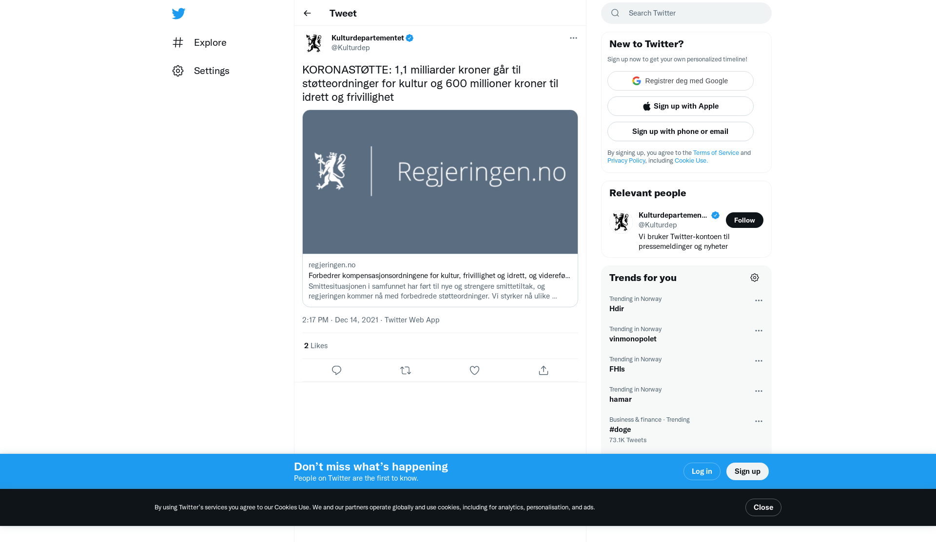Smittesituasjonen i samfunnet har ført til nye og strengere smittetiltak, og regjeringen kommer nå med forbedrede støtteordninger. Vi styrker nå ulike ordninger for å hjelpe kulturen, idretten og frivilligheten gjennom de neste månedene. Summen som er ...