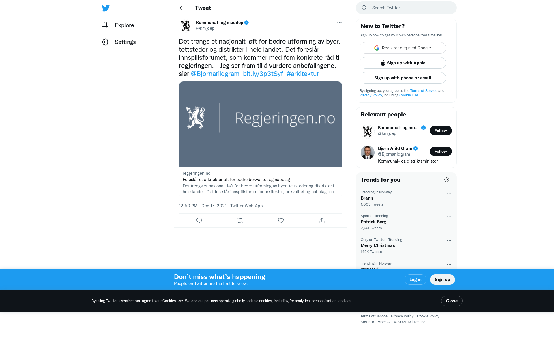Det trengs et nasjonalt løft for bedre utforming av byer, tettsteder og distrikter i hele landet. Det foreslår innspillsforumet, som kommer med fem konkrete råd til regjeringen. - Jeg ser fram til å vurdere anbefalingene, sier @Bjornarildgram https://t.co/qD9yHdV8QN #arkitektur