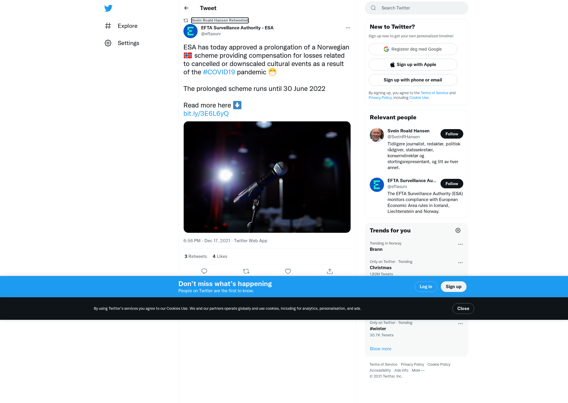RT @eftasurv: ESA has today approved a prolongation of a Norwegian 🇳🇴 scheme providing compensation for losses related to cancelled or downscaled cultural events as a result of the #COVID19 pandemic 😷