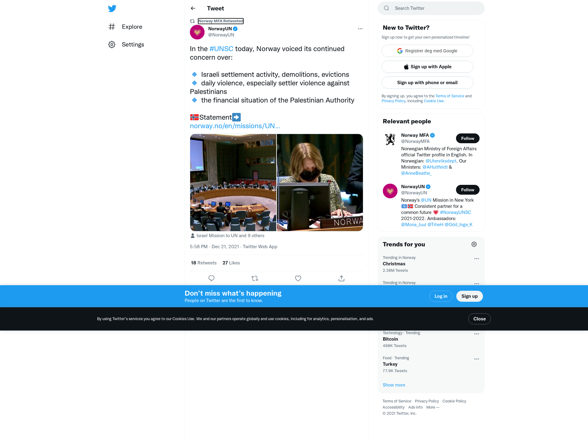 RT @NorwayUN: In the #UNSC today, Norway voiced its continued concern over: 🔹 Israeli settlement activity, demolitions, evictions 🔹 daily…