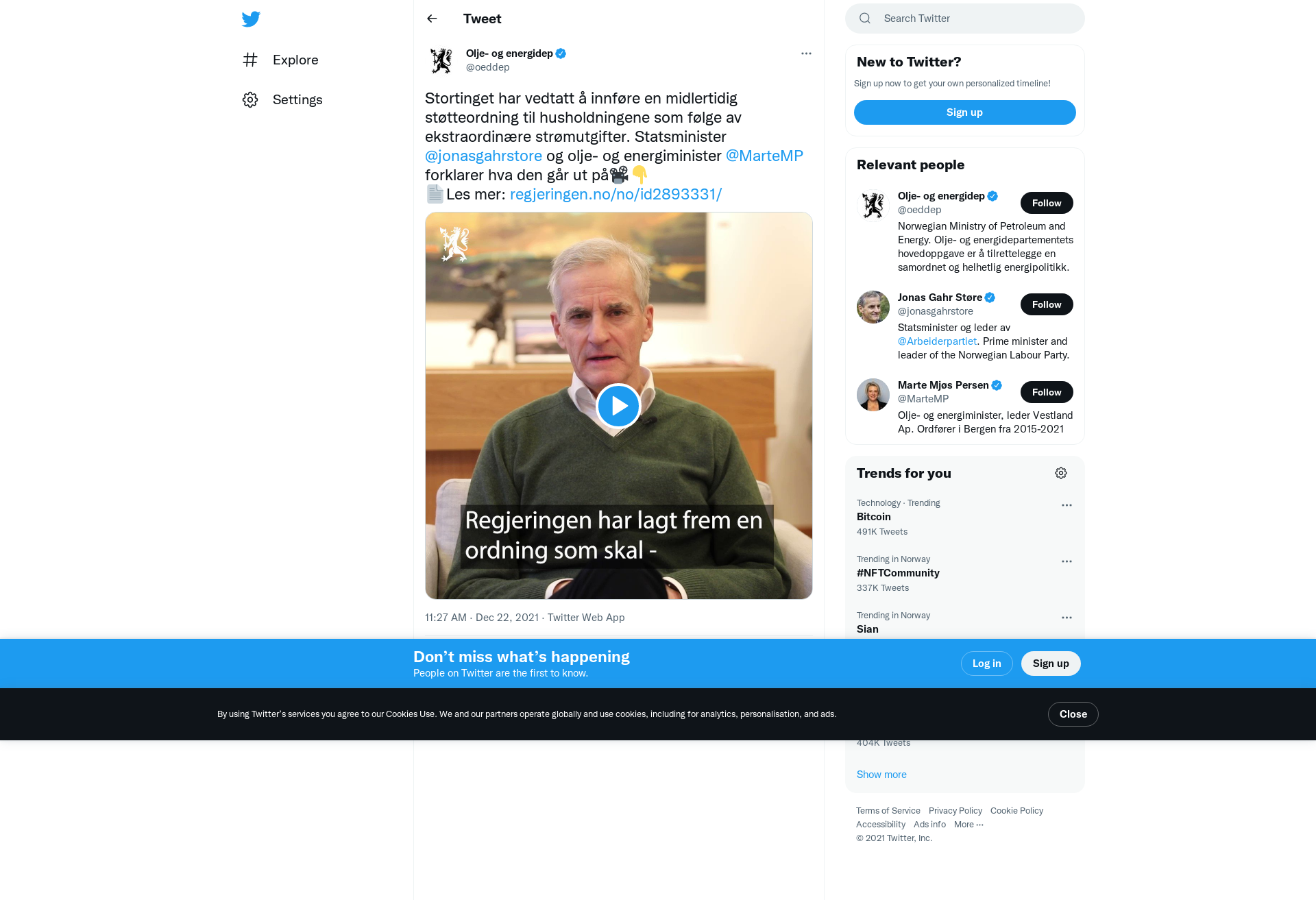 Stortinget har vedtatt å innføre en midlertidig støtteordning til husholdningene som følge av ekstraordinære strømutgifter. Statsminister @jonasgahrstore og olje- og energiminister @MarteMP forklarer hva den går ut på📽️👇