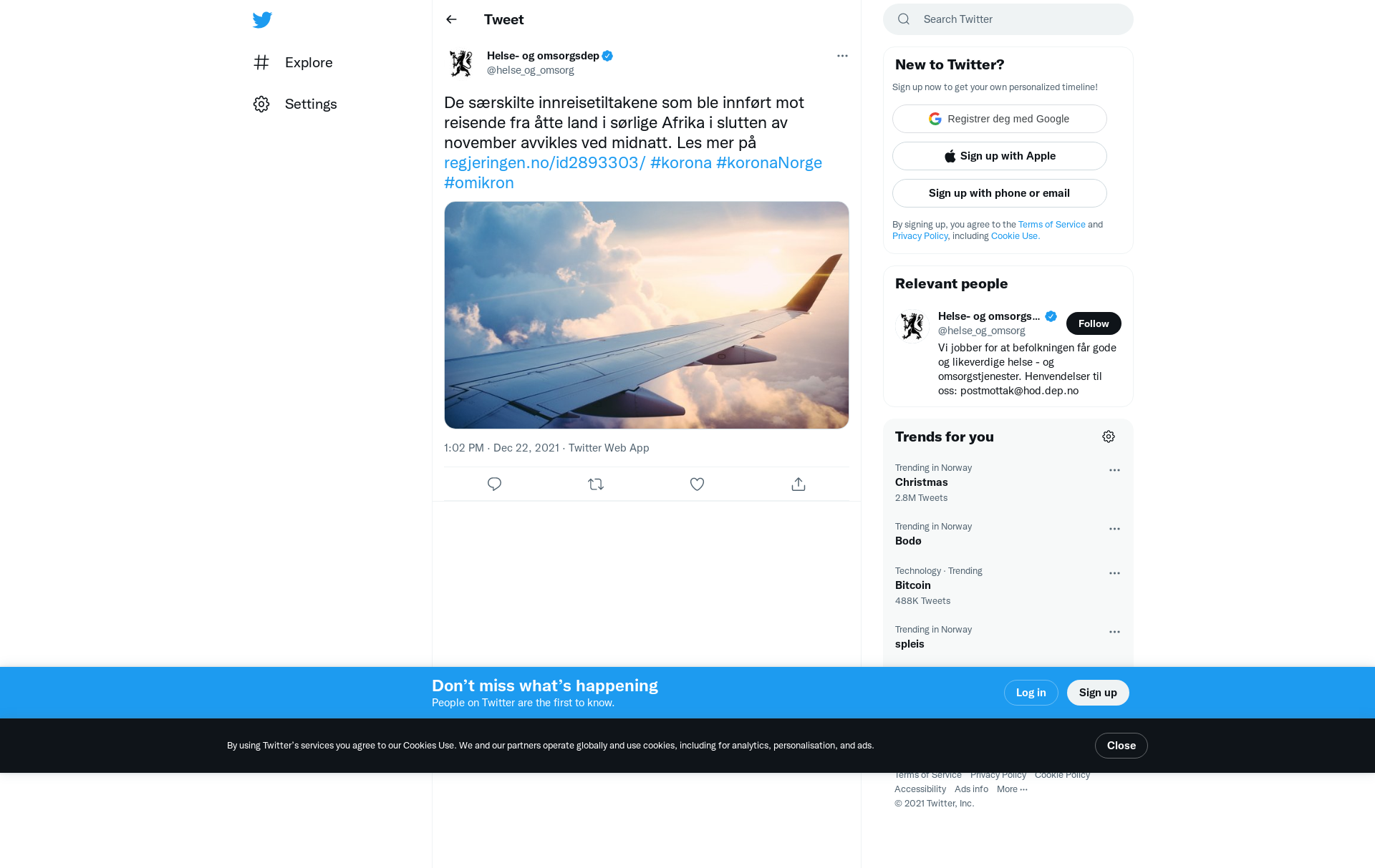 Avvikler særskilte innreisetiltak mot reisende fra sørlige Afrika