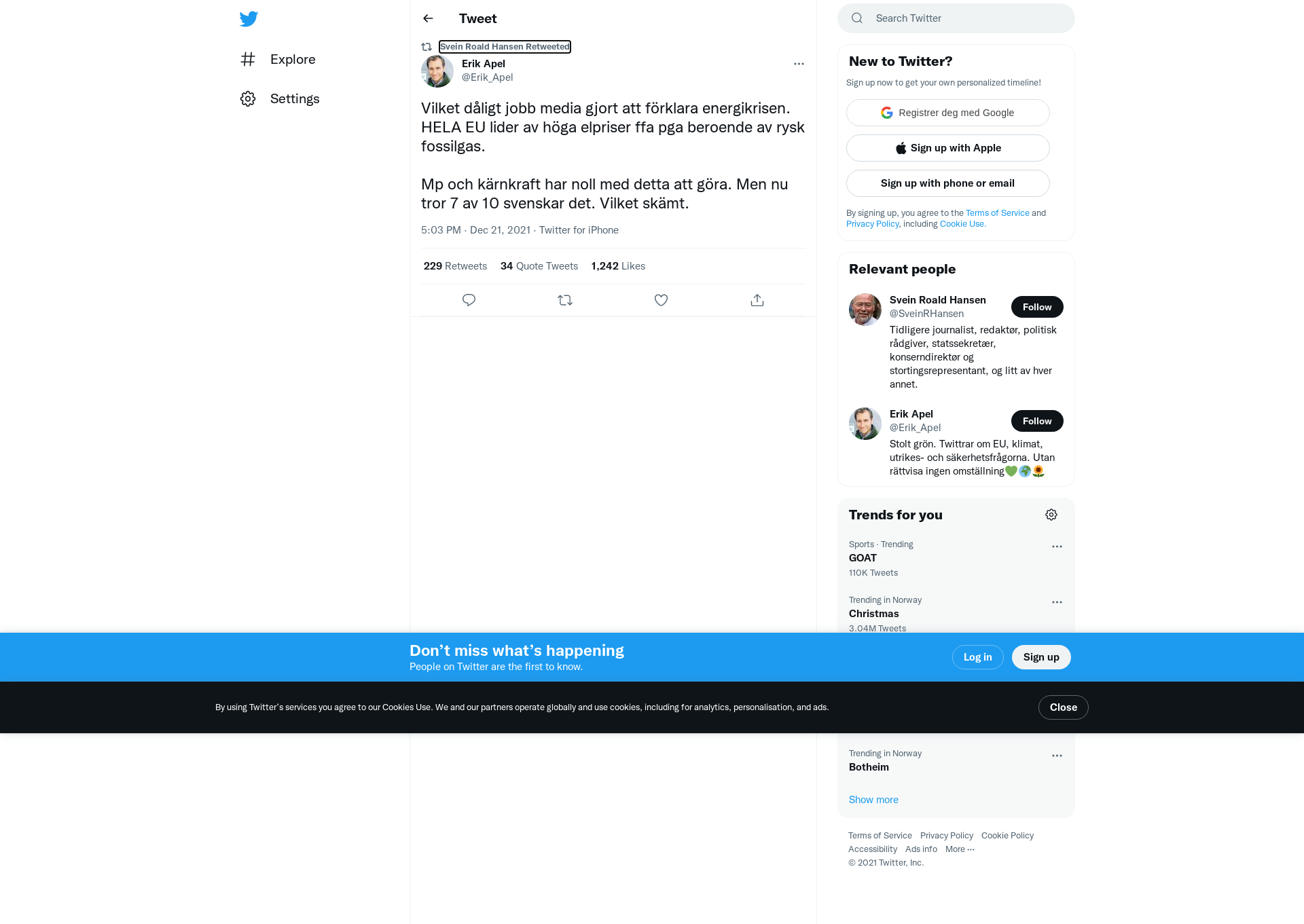 RT @Erik_Apel: Vilket dåligt jobb media gjort att förklara energikrisen. HELA EU lider av höga elpriser ffa pga beroende av rysk fossilgas.