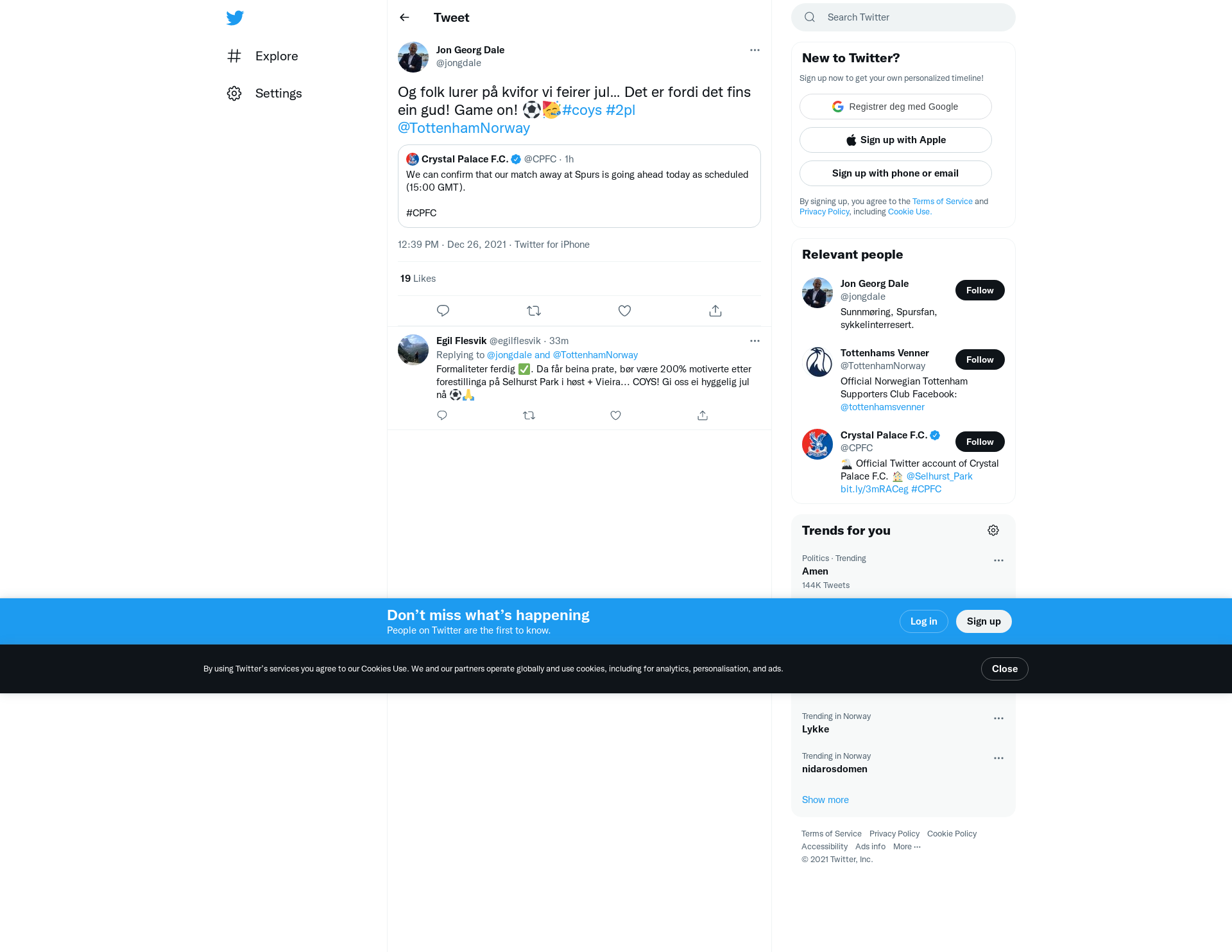 Og folk lurer på kvifor vi feirer jul… Det er fordi det fins ein gud! Game on! ⚽️🥳#coys #2pl @TottenhamNorway