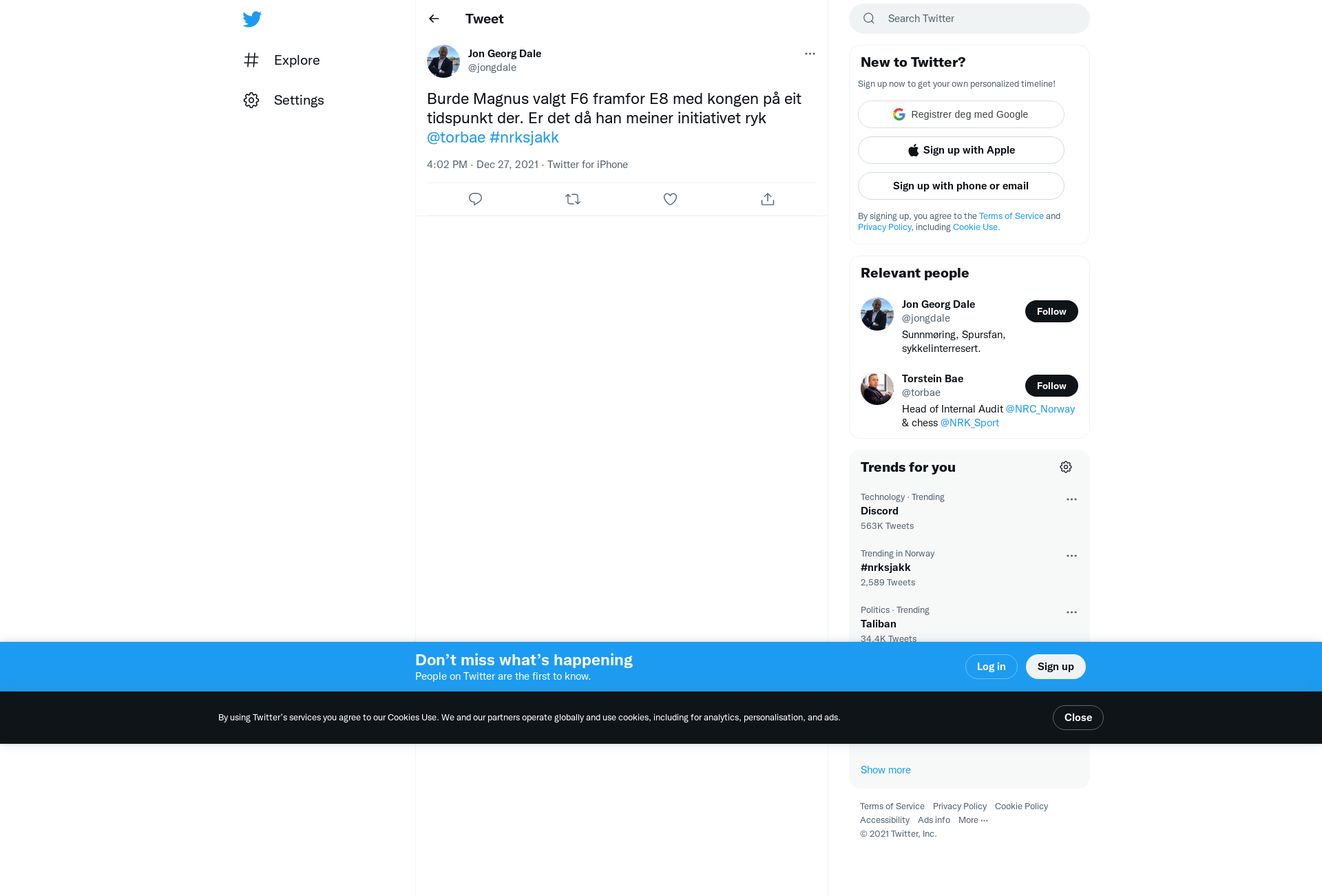 Burde Magnus valgt F6 framfor E8 med kongen på eit tidspunkt der. Er det då han meiner initiativet ryk @torbae #nrksjakk