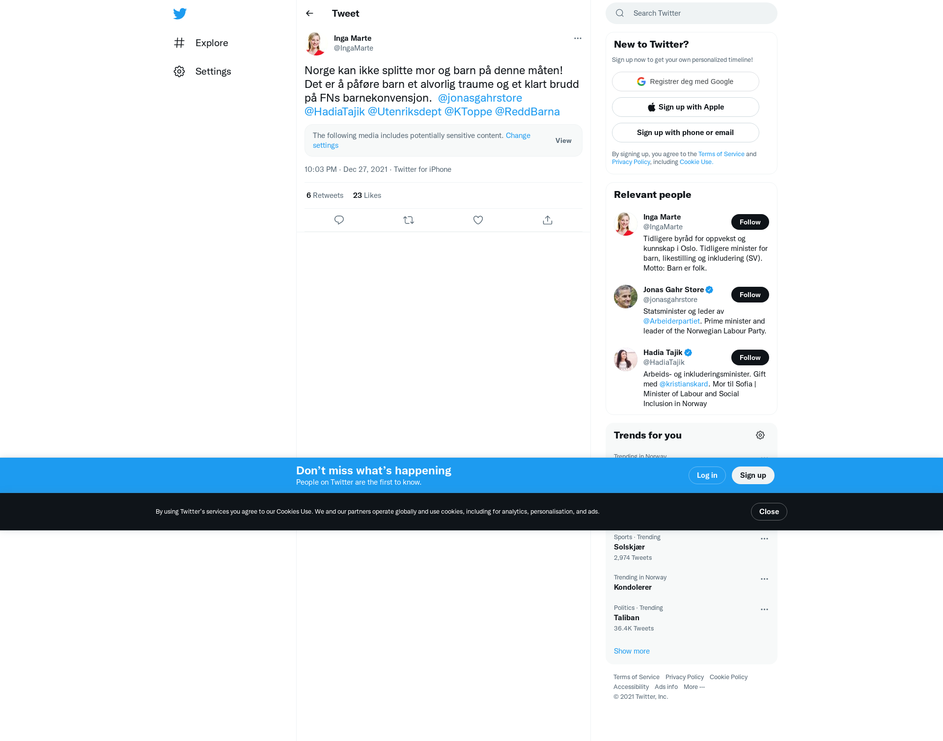 Norge kan ikke splitte mor og barn på denne måten! Det er å påføre barn et alvorlig traume og et klart brudd på FNs barnekonvensjon. @jonasgahrstore @HadiaTajik @Utenriksdept @KToppe @ReddBarna https://t.co/Vg6EtMicgv