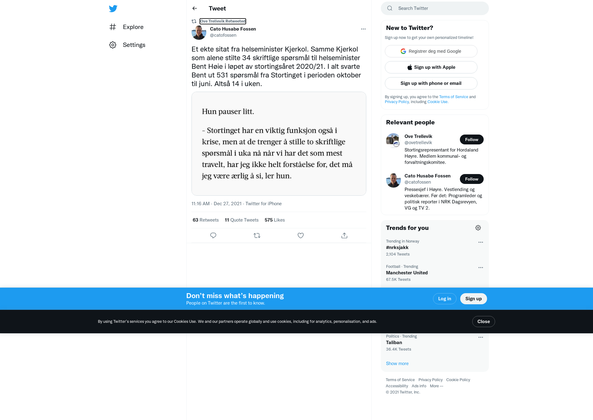 RT @catofossen: Et ekte sitat fra helseminister Kjerkol. Samme Kjerkol som alene stilte 34 skriftlige spørsmål til helseminister Bent Høie i løpet av stortingsåret 2020/21. I alt svarte Bent ut 531 spørsmål fra Stortinget i perioden oktober til juni. Altså 14 i uken. https://t.co/5EO2vzspNP