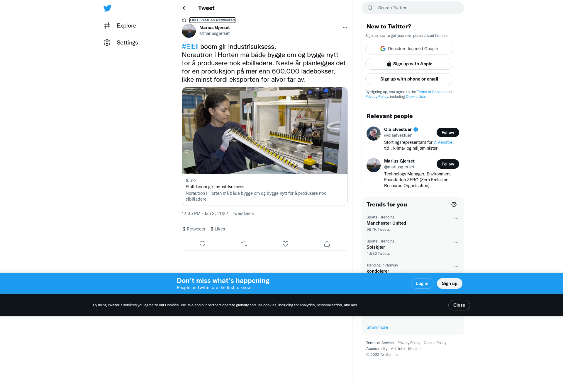RT @mariusgjerset: #Elbil boom gir industrisuksess. Norautron i Horten må både bygge om og bygge nytt for å produsere nok elbilladere. Nest…