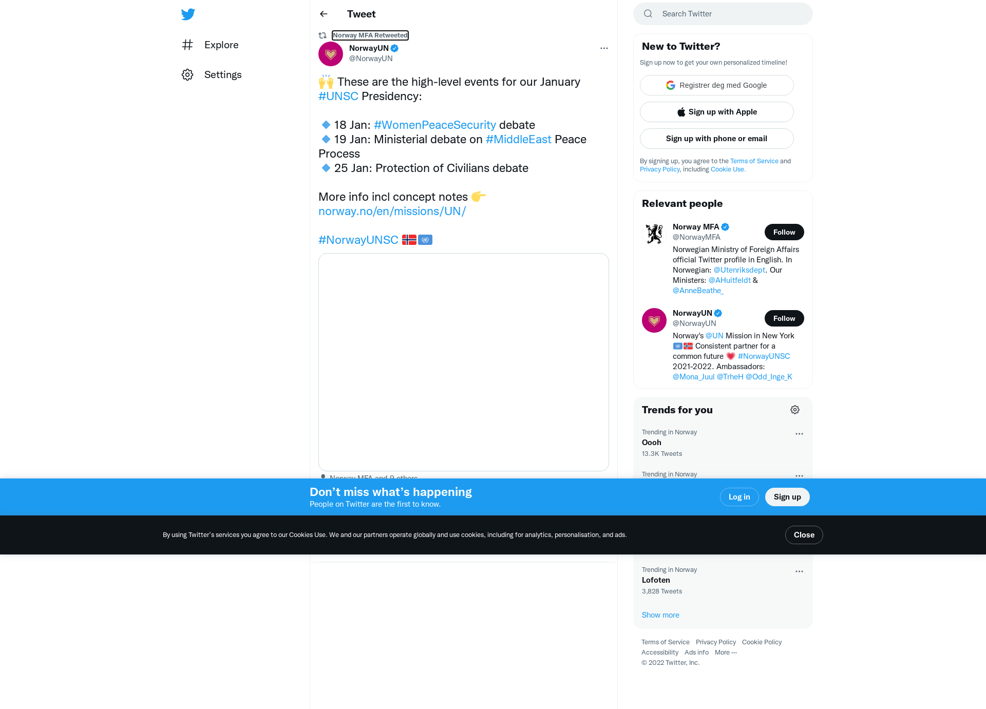 RT @NorwayUN: 🙌 These are the high-level events for our January #UNSC Presidency: 🔹18 Jan: #WomenPeaceSecurity debate 🔹19 Jan: Ministerial…