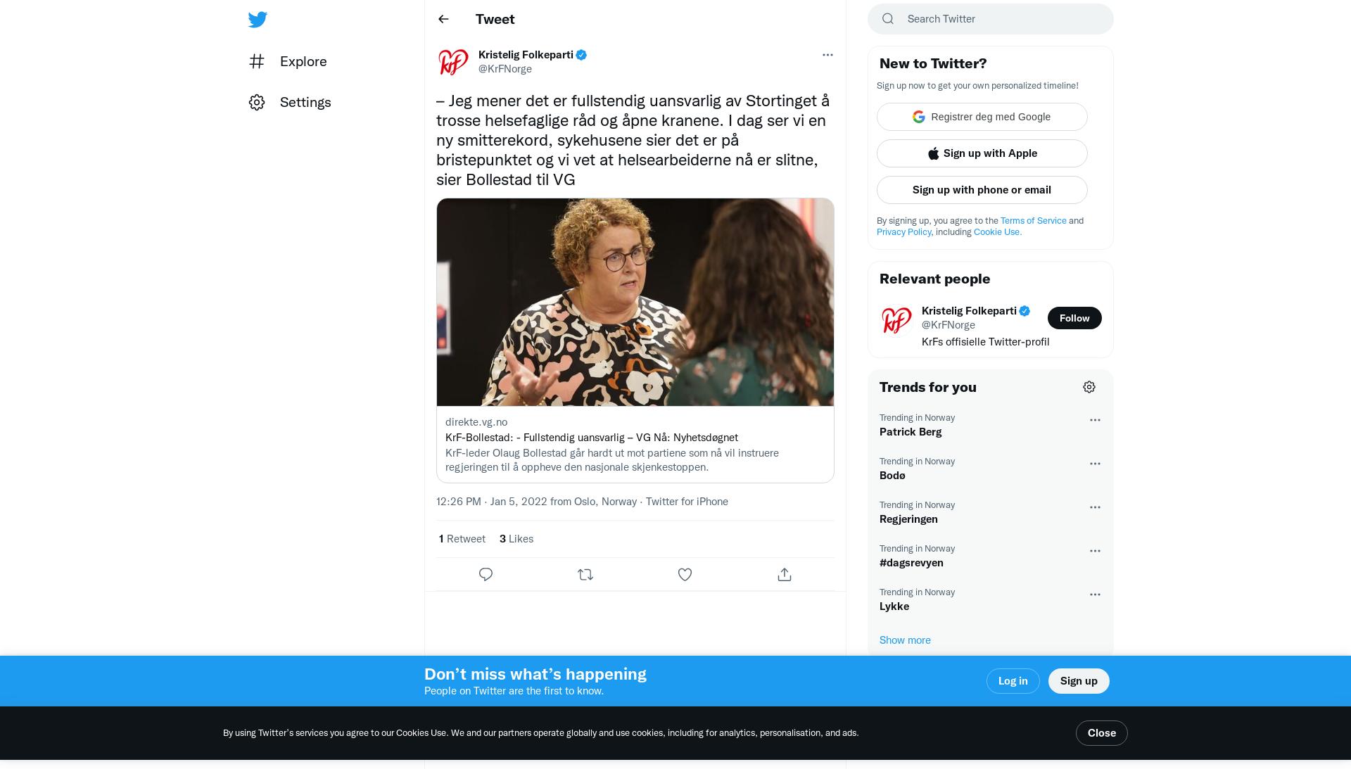 KrF-Bollestad: - Fullstendig uansvarlig – VG Nå: Nyhetsdøgnet