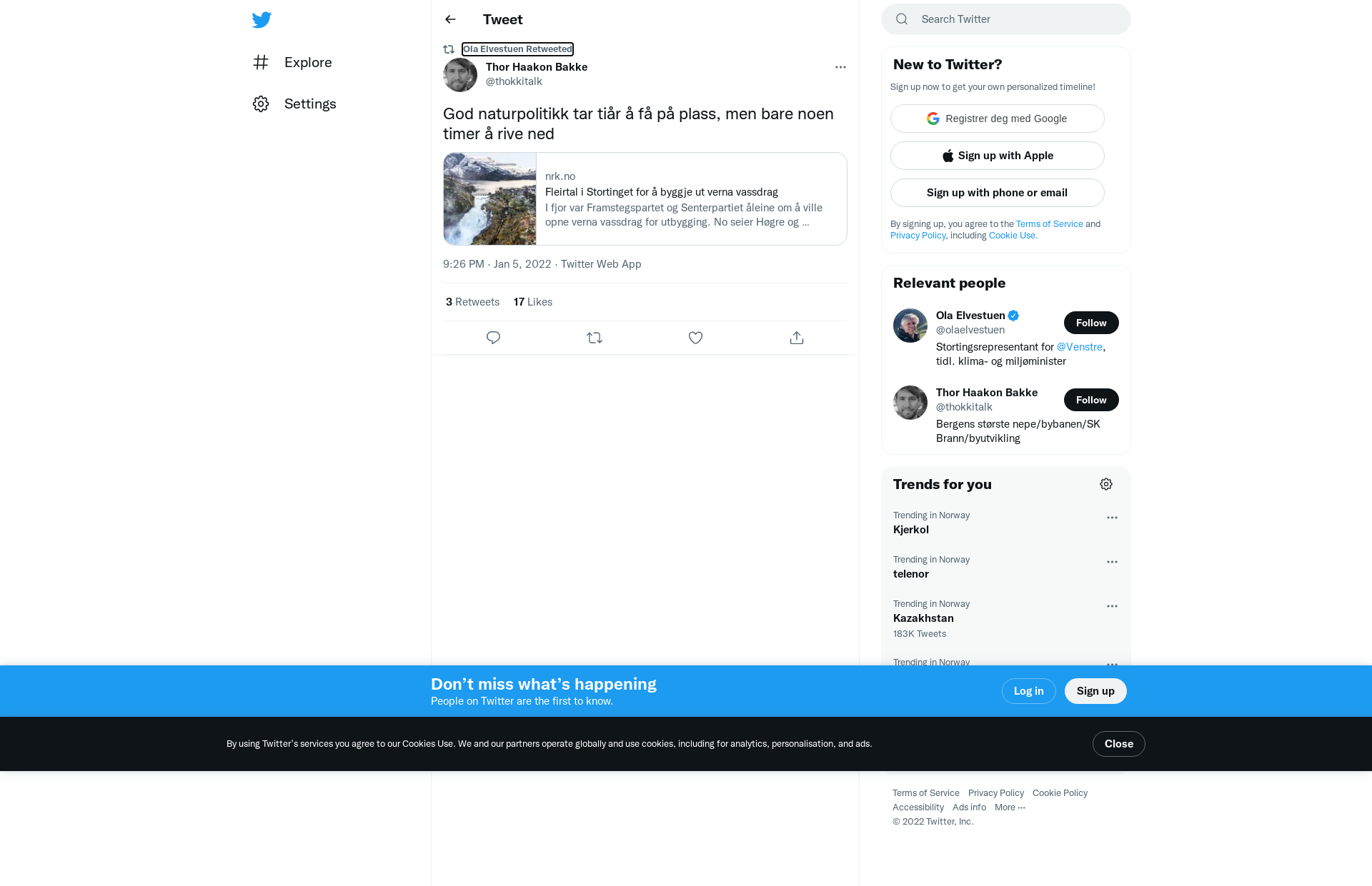 RT @thokkitalk: God naturpolitikk tar tiår å få på plass, men bare noen timer å rive ned https://t.co/uHc0QQVTKJ