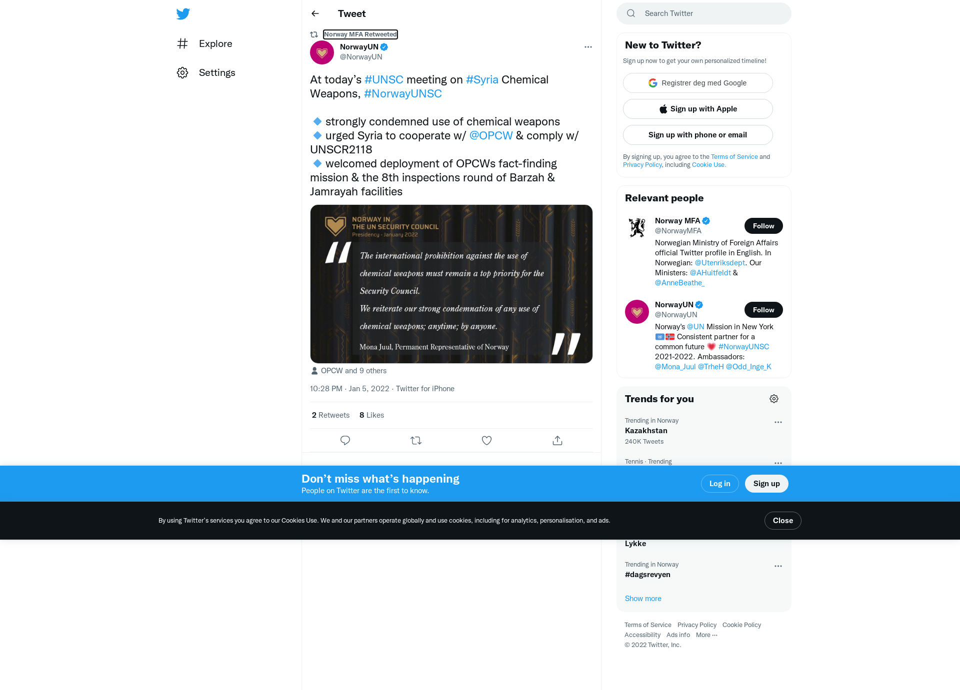 RT @NorwayUN: At today’s #UNSC meeting on #Syria Chemical Weapons, #NorwayUNSC 🔹strongly condemned use of chemical weapons 🔹urged Syria to…