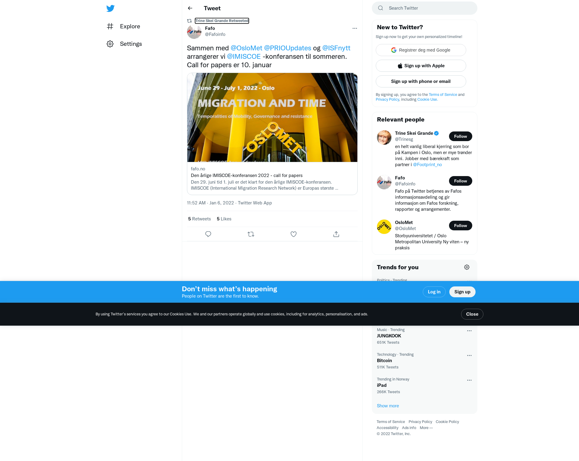 RT @Fafoinfo: Sammen med @OsloMet @PRIOUpdates og @ISFnytt arrangerer vi @IMISCOE -konferansen til sommeren. Call for papers er 10. januar https://t.co/tOfXEDMWcz