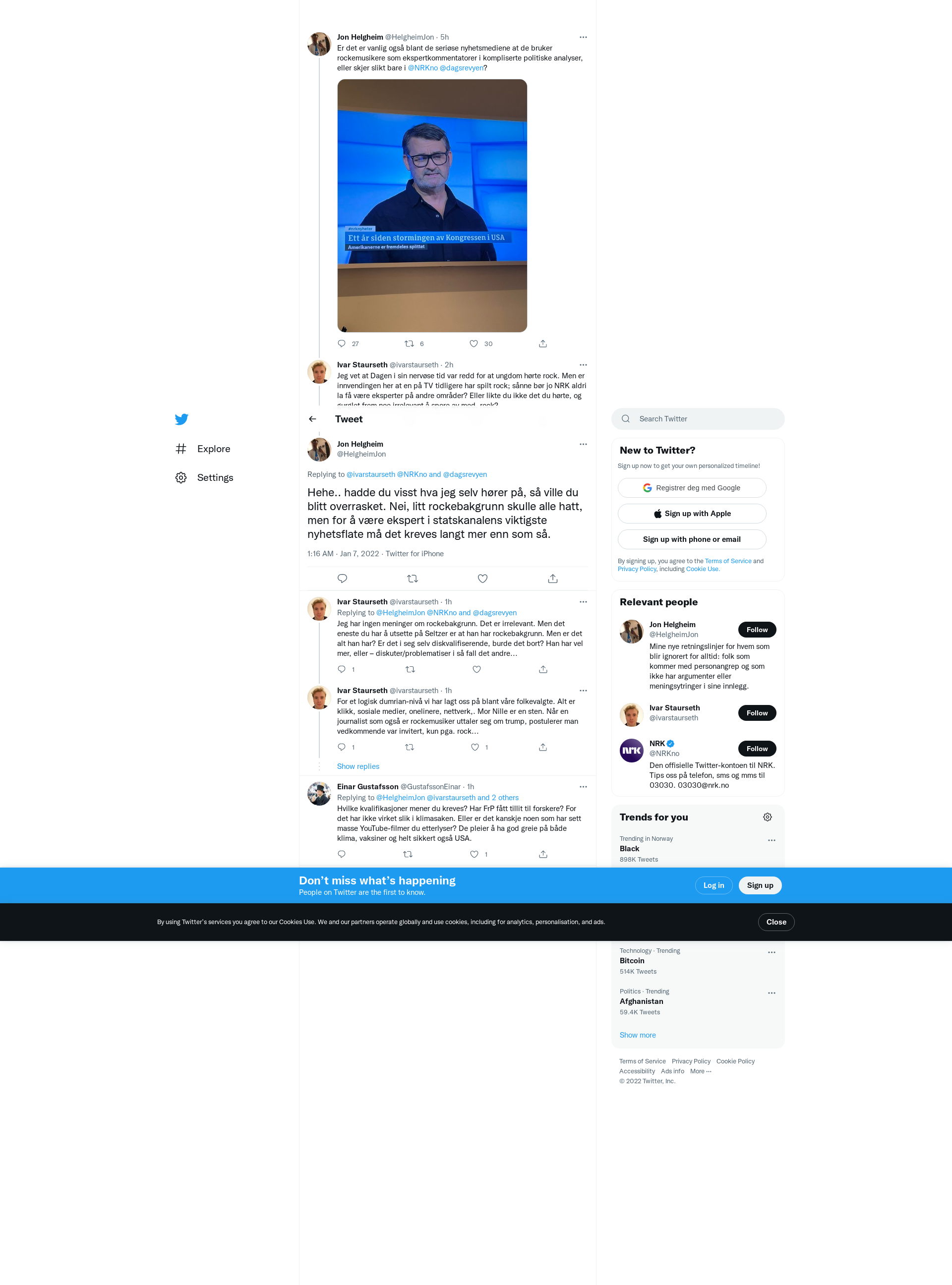 @ivarstaurseth @NRKno @dagsrevyen Hehe.. hadde du visst hva jeg selv hører på, så ville du blitt overrasket. Nei, litt rockebakgrunn skulle alle hatt, men for å være ekspert i statskanalens viktigste nyhetsflate må det kreves langt mer enn som så.