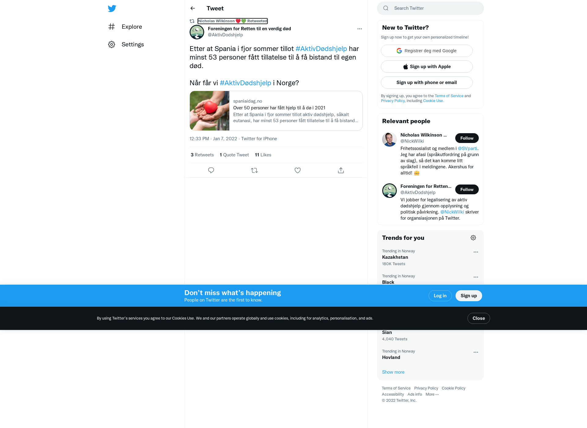 RT @AktivDodshjelp: Etter at Spania i fjor sommer tillot #AktivDødshjelp har minst 53 personer fått tillatelse til å få bistand til egen død.