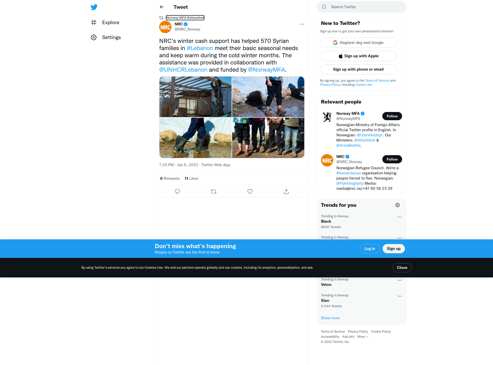 RT @NRC_Norway: NRC’s winter cash support has helped 570 Syrian families in #Lebanon meet their basic seasonal needs and keep warm during the cold winter months. The assistance was provided in collaboration with @UNHCRLebanon and funded by @NorwayMFA. https://t.co/MK2Svkj2LM