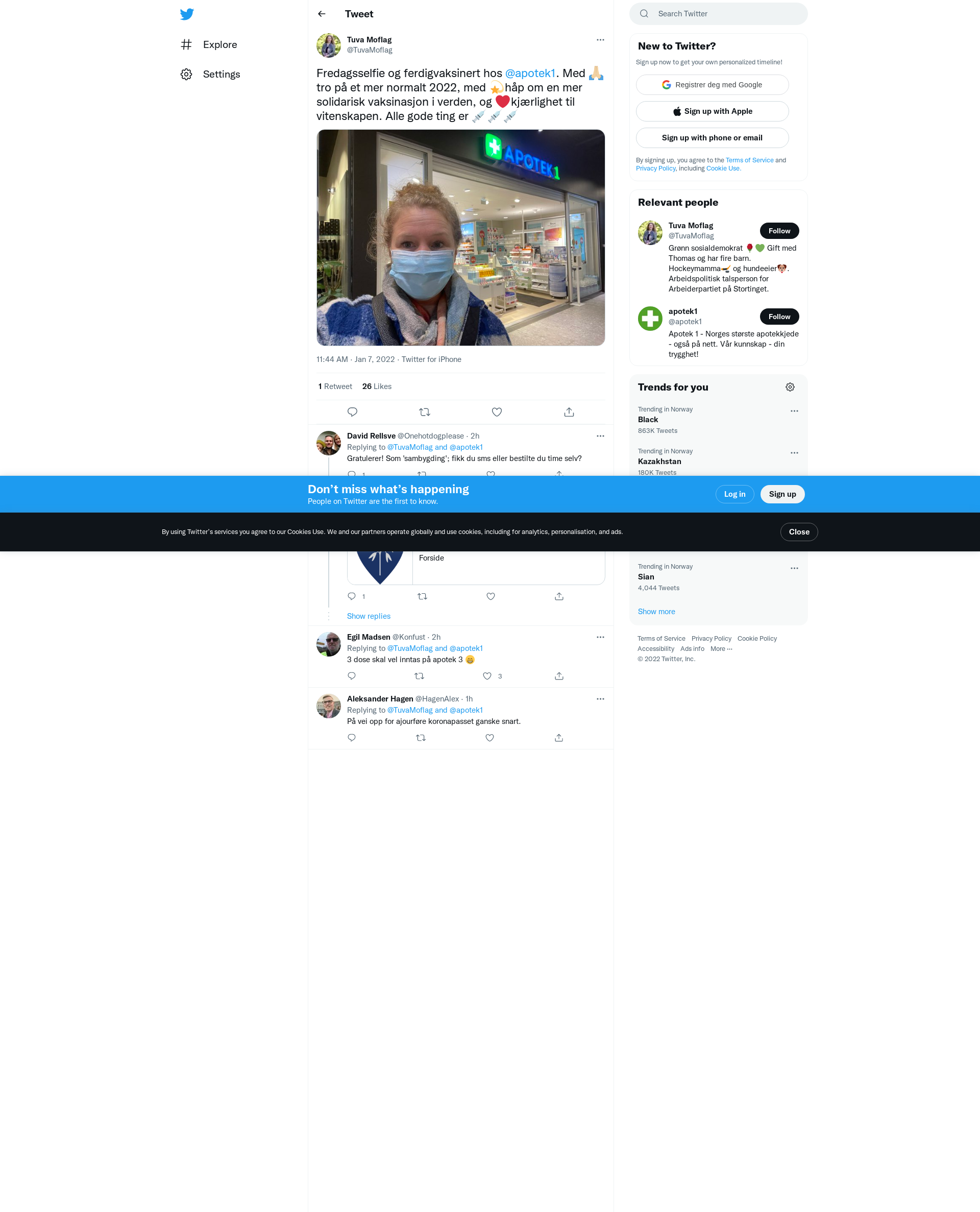 Fredagsselfie og ferdigvaksinert hos @apotek1. Med 🙏🏼tro på et mer normalt 2022, med 💫håp om en mer solidarisk vaksinasjon i verden, og ❤️kjærlighet til vitenskapen. Alle gode ting er 💉💉💉 https://t.co/nAaPI3ZMrx