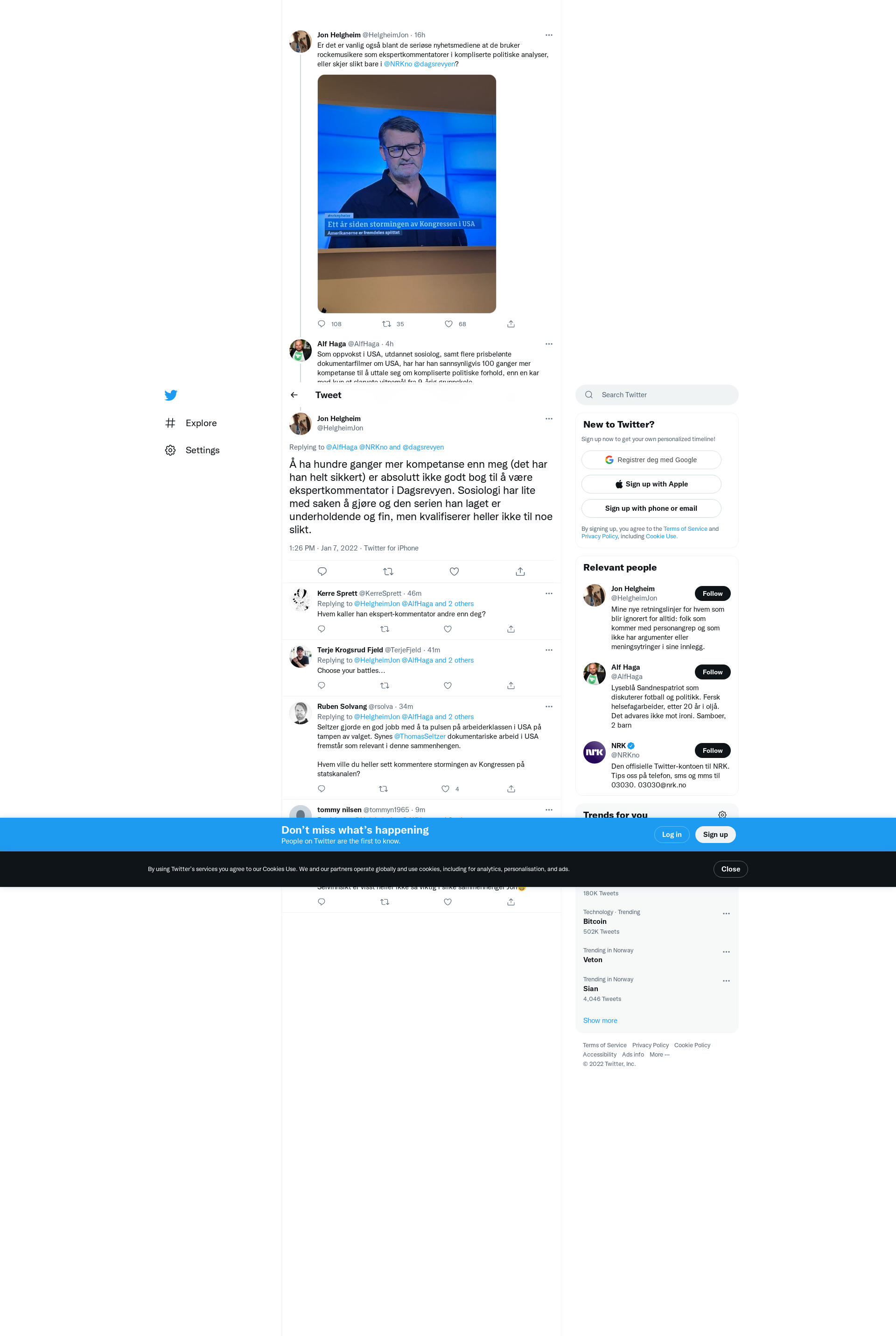 @AlfHaga @NRKno @dagsrevyen Å ha hundre ganger mer kompetanse enn meg (det har han helt sikkert) er absolutt ikke godt bog til å være ekspertkommentator i Dagsrevyen. Sosiologi har lite med saken å gjøre og den serien han laget er underholdende og fin, men kvalifiserer heller ikke til noe slikt.