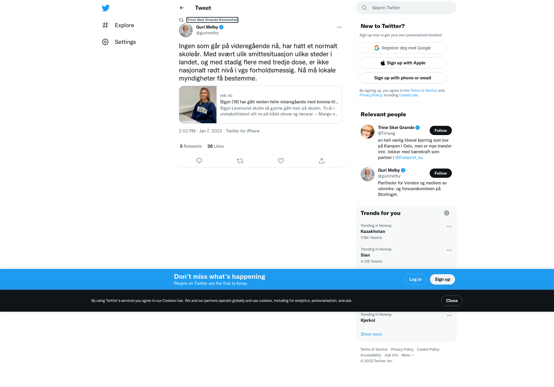 RT @gurimelby: Ingen som går på videregående nå, har hatt et normalt skoleår. Med svært ulik smittesituasjon ulike steder i landet, og med stadig flere med tredje dose, er ikke nasjonalt rødt nivå i vgs forholdsmessig. Nå må lokale myndigheter få bestemme.