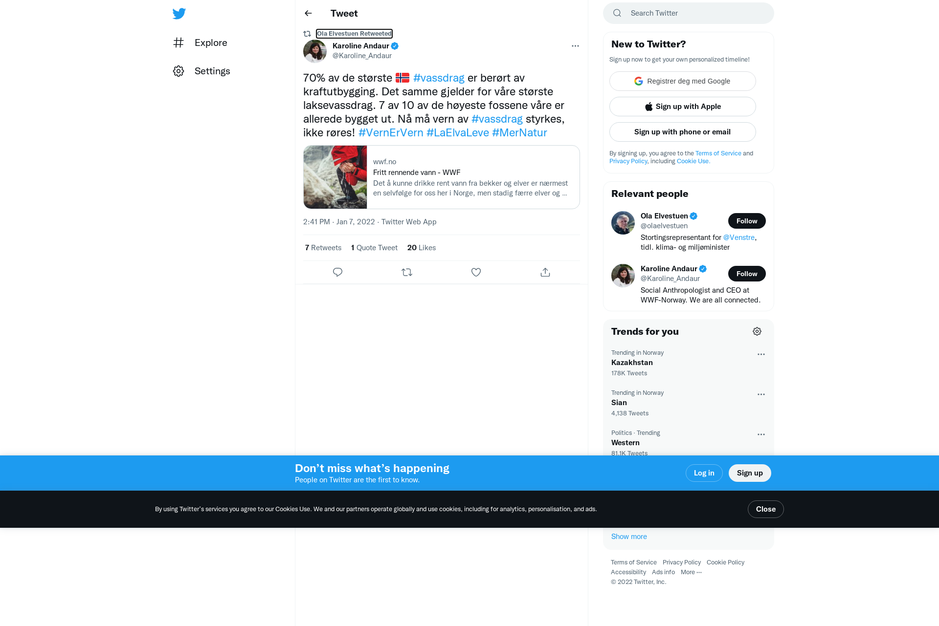 RT @Karoline_Andaur: 70% av de største 🇳🇴 #vassdrag er berørt av kraftutbygging. Det samme gjelder for våre største laksevassdrag. 7 av 10 av de høyeste fossene våre er allerede bygget ut. Nå må vern av #vassdrag styrkes, ikke røres! #VernErVern #LaElvaLeve #MerNatur