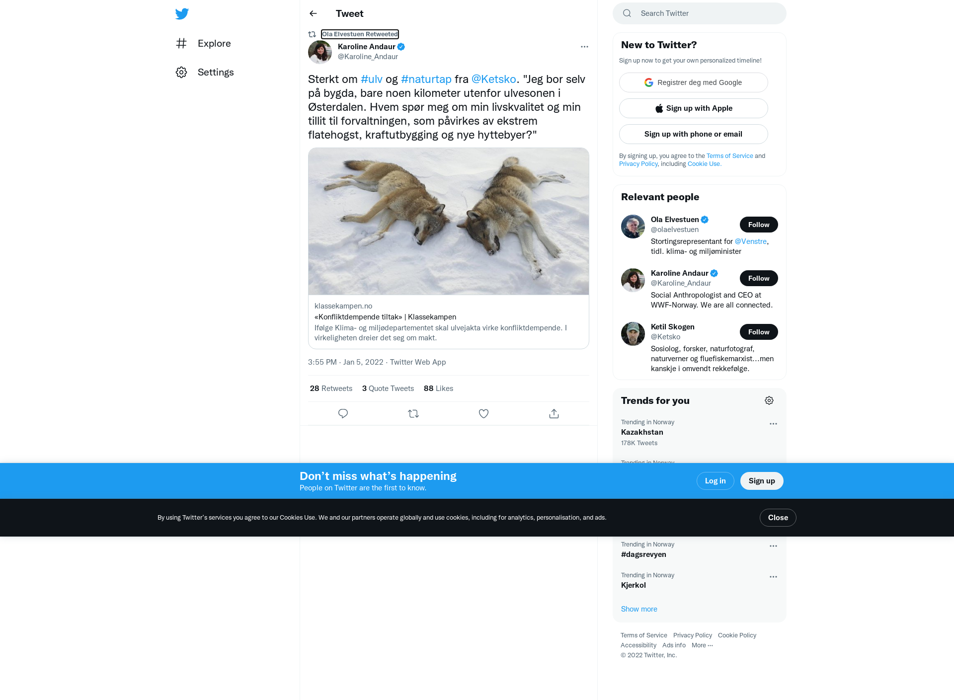 RT @Karoline_Andaur: Sterkt om #ulv og #naturtap fra @Ketsko. "Jeg bor selv på bygda, bare noen kilometer utenfor ulvesonen i Østerdalen. Hvem spør meg om min livskvalitet og min tillit til forvaltningen, som påvirkes av ekstrem flatehogst, kraftutbygging og nye hyttebyer?"