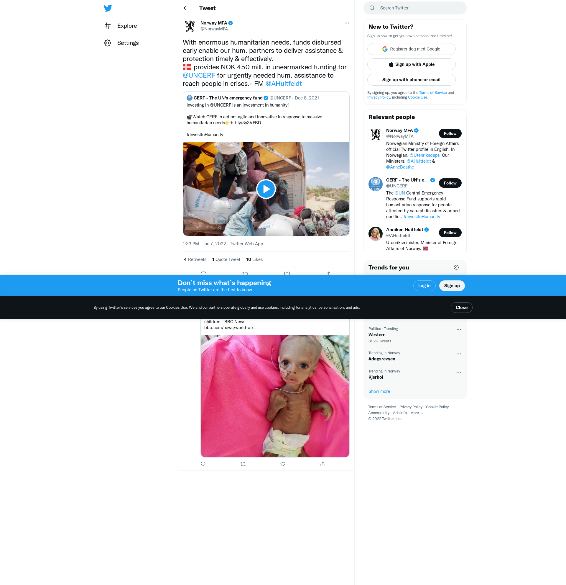 🇳🇴 provides NOK 450 mill. in unearmarked funding for @UNCERF for urgently needed hum. assistance to reach people in crises.- FM @AHuitfeldt