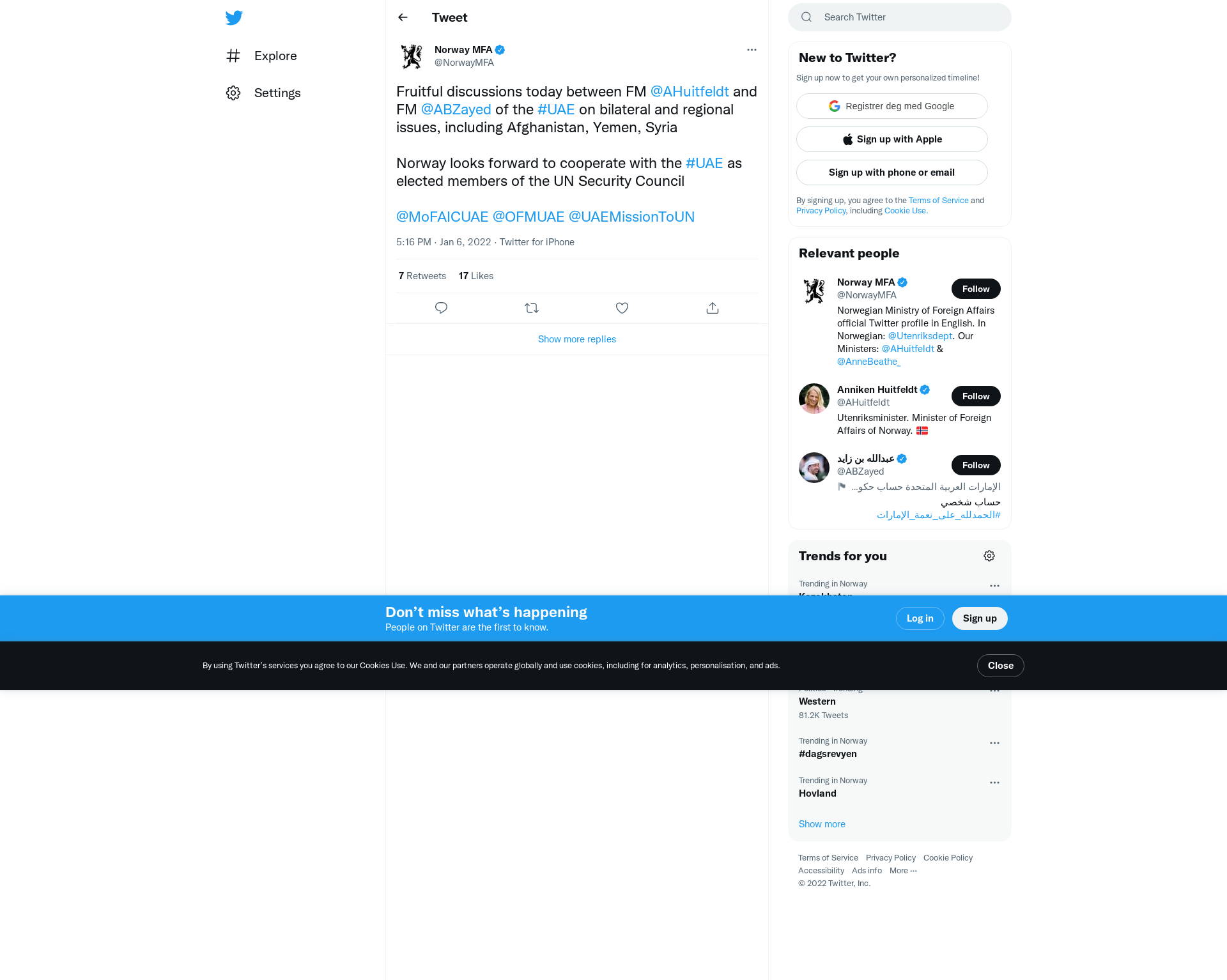Fruitful discussions today between FM @AHuitfeldt and FM @ABZayed of the #UAE on bilateral and regional issues, including Afghanistan, Yemen, Syria