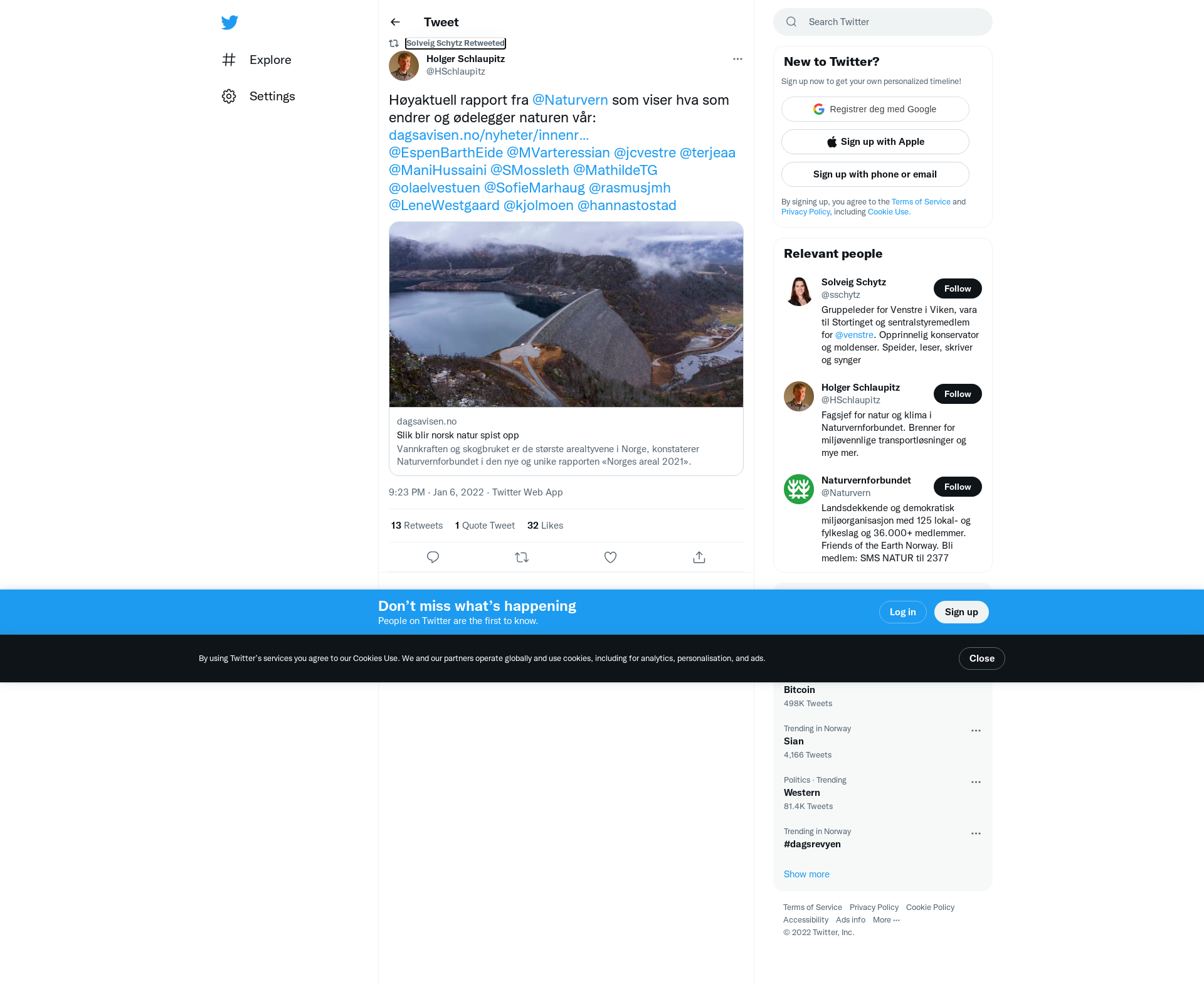 RT @HSchlaupitz: Høyaktuell rapport fra @Naturvern som viser hva som endrer og ødelegger naturen vår: https://t.co/kCsz9L2UaH @EspenBarthEi…