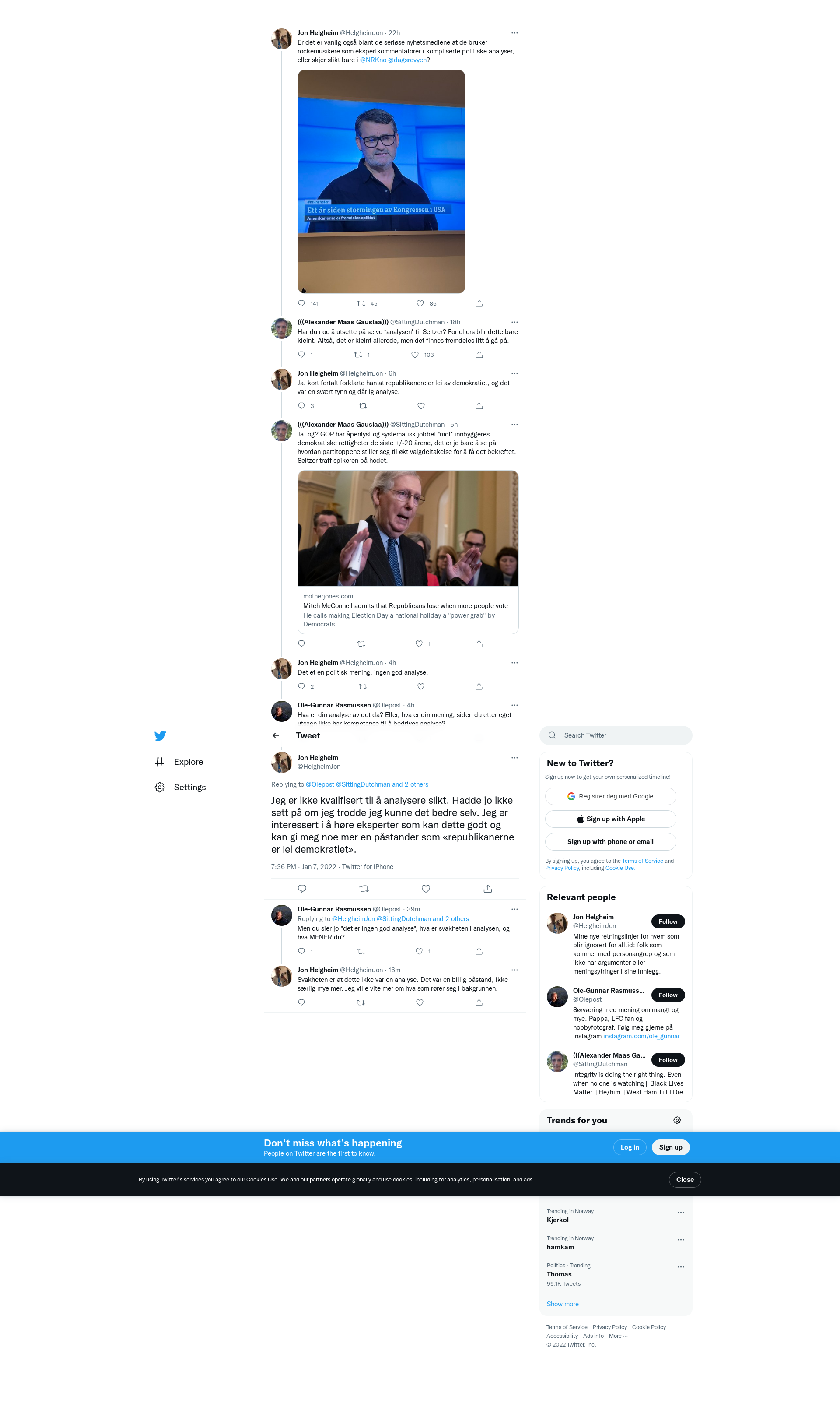 @Olepost @SittingDutchman @NRKno @dagsrevyen Jeg er ikke kvalifisert til å analysere slikt. Hadde jo ikke sett på om jeg trodde jeg kunne det bedre selv. Jeg er interessert i å høre eksperter som kan dette godt og kan gi meg noe mer en påstander som «republikanerne er lei demokratiet».